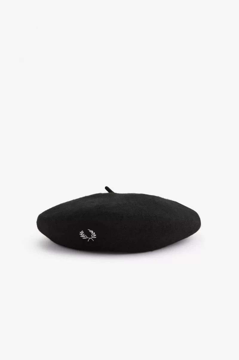Eine klassische Baskenmütze aus Wolle mit kontrastierender Lorbeerkranz-Stickerei.