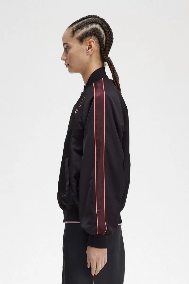 Bomberjacke mit bedrucktem Futter für Damen Schwarz