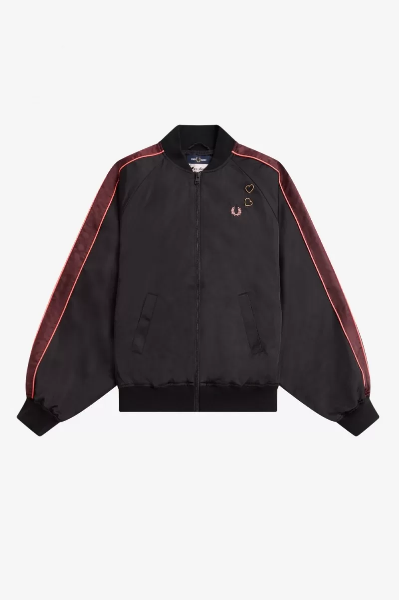 Unsere von Amy inspirierte Bomberjacke mit bedrucktem Futter, Amys charakteristischen Liebesherzen und einem übergroßen Lorbeerkranz in der Mitte des Rückens.