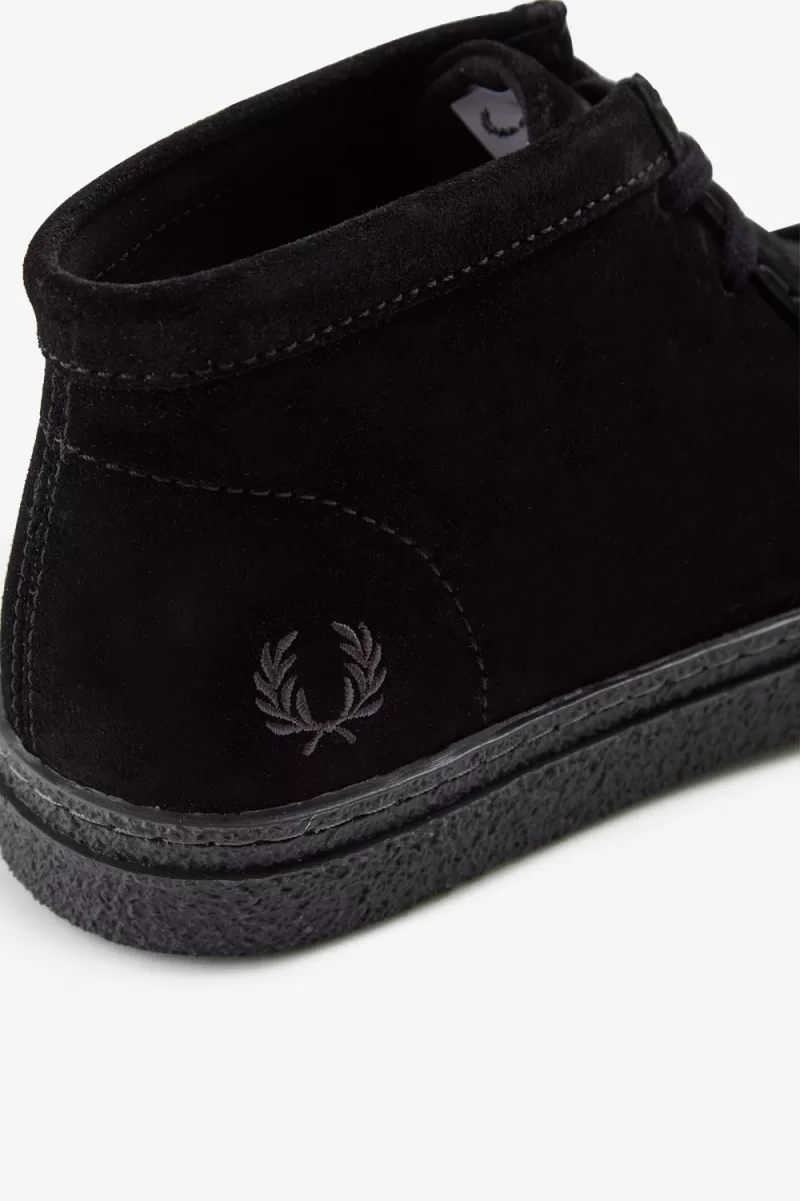 Hergestellt in Portugal / Grobe Gummisohle mit Kreppeffekt / Obermaterial aus Wildleder mit Paspelierung / Flache Schnürsenkel und Twill-Innensohle / Geprägter Lorbeerkranz auf dem Obermaterial