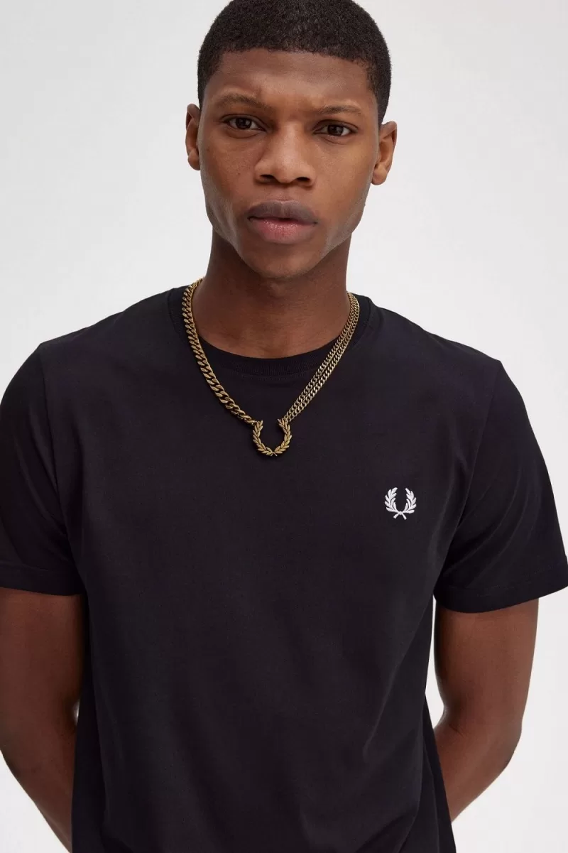 Wir sind ziemlich stolz auf unseren Lorbeerkranz. Es ist eindeutig unser Titel und wurde Fred vom Wimbledon All England Club verliehen, nachdem er drei Jahre in Folge gewonnen hatte. Als Symbol für Erfolg und Sieg wurde der Lorbeerkranz später als Markenzeichen von Fred Perry übernommen und ist bis heute ein Zeichen für Individualität und Zugehörigkeit, von Spitzensportlern bis hin zu Untergrund-Subkulturen. Unsere Halskette mit Lorbeerkranz-Anhänger besteht aus zwei dicken Ketten auf der einen Seite und einer dünneren Kette auf der anderen Seite. Hergestellt aus plattiertem Messing und entworfen, um über dem Fred Perry Hemd getragen zu werden. Eindeutig unsers, unverkennbar Ihres.