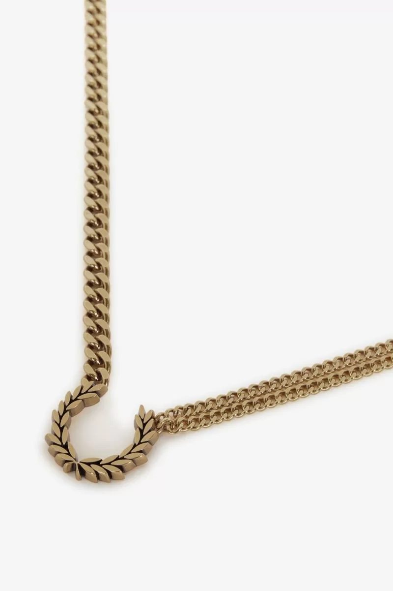 Unsere klobige, vergoldete Halskette mit einem Lorbeerkranz-Anhänger und einer Doppelkette.