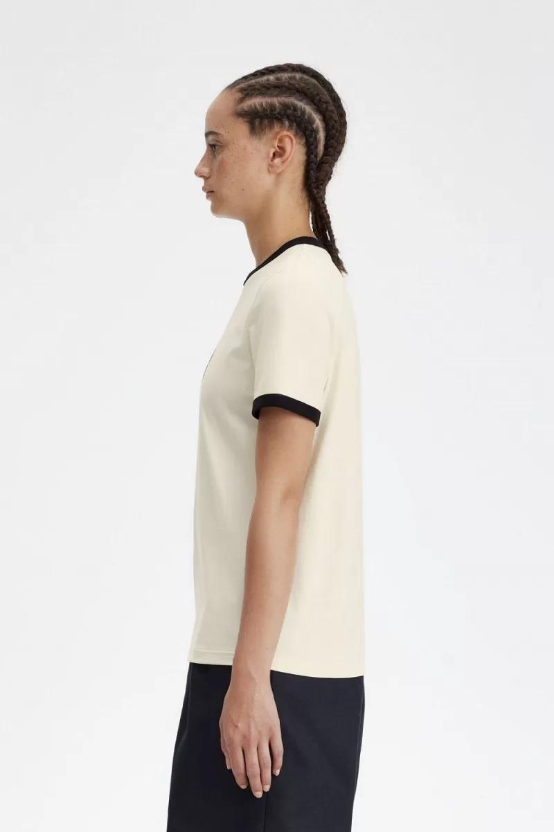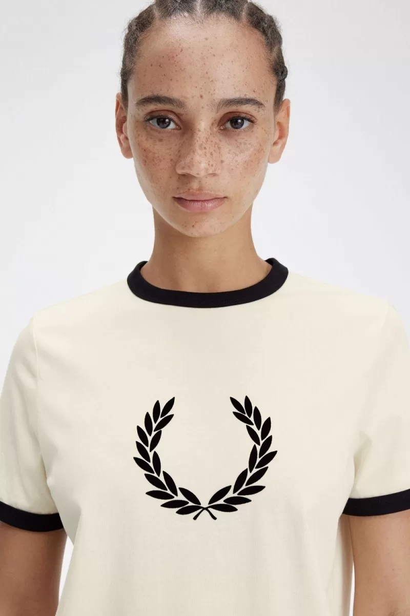 Flocked Laurel Wreath Damen T-Shirt Beige