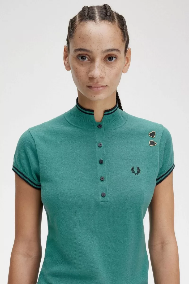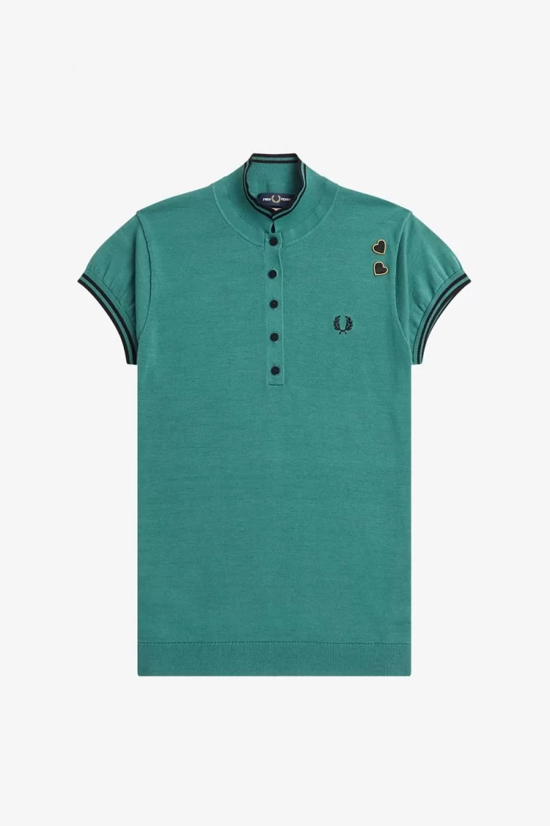 Ein feinmaschiges Jersey-Strick-Poloshirt mit elegantem Stehkragen, mit unserem charakteristischen Doppelstreifen und Amys bekannten Signaturen.