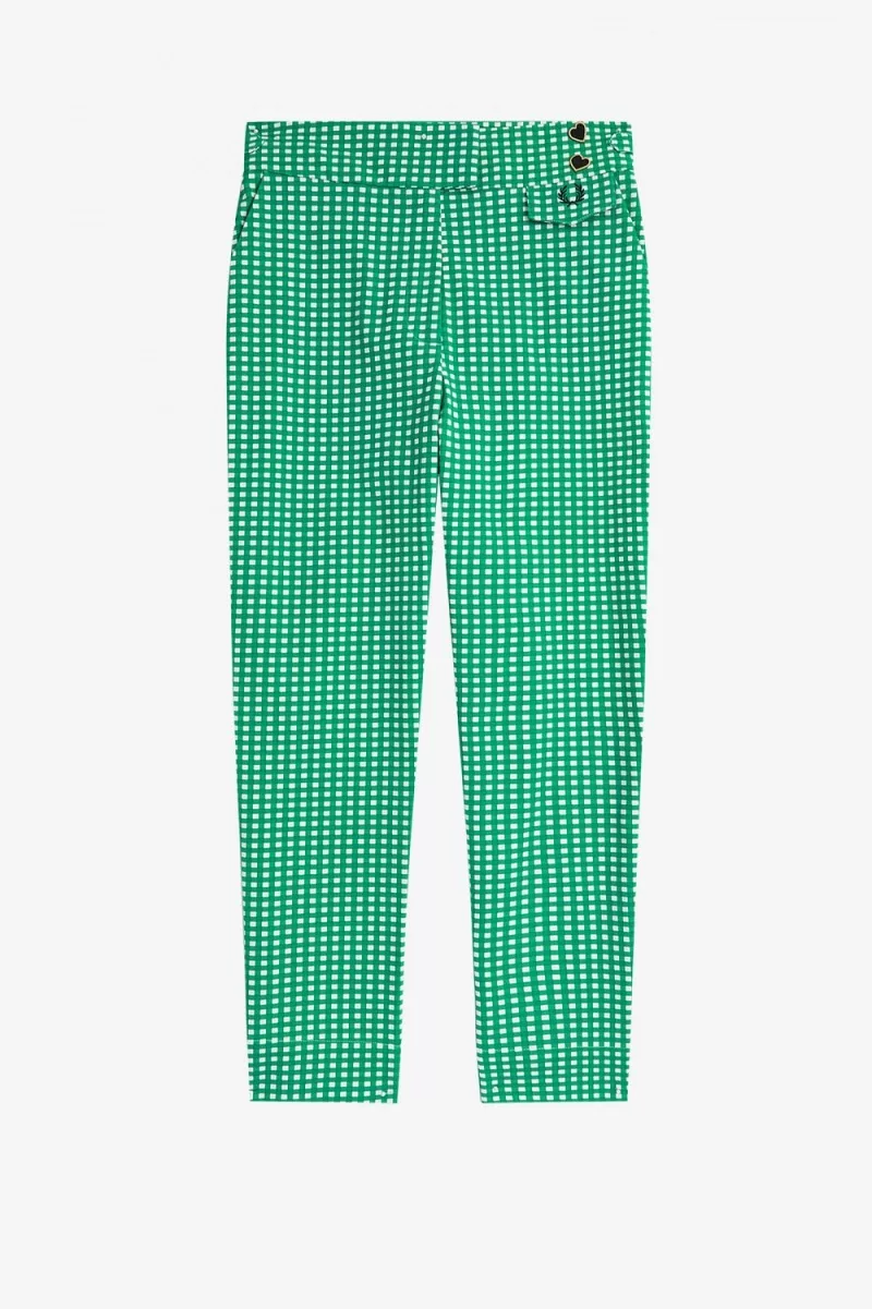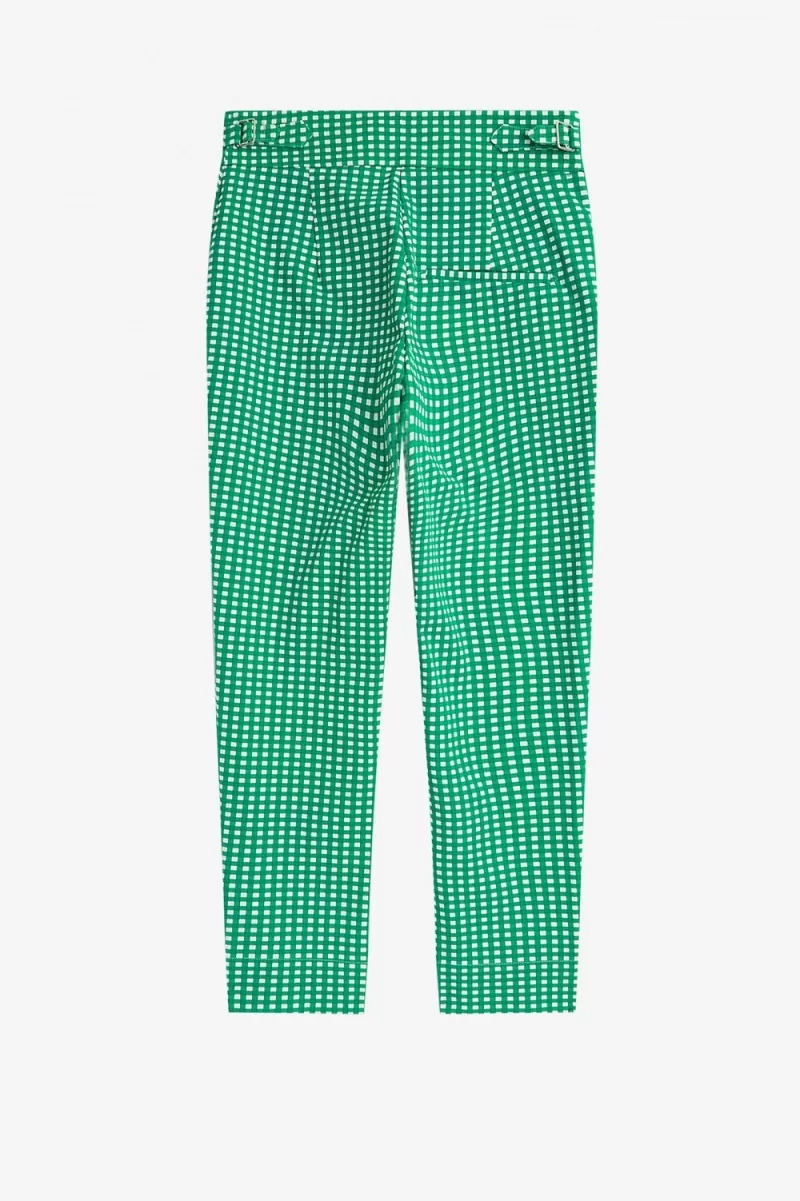 Unsere Slim-Fit-Hose ist eine Anspielung auf Amys Originaldesigns für uns und verfügt über einen durchgehenden Gingham-Print und Amys charakteristische gestickte Liebesherzen.