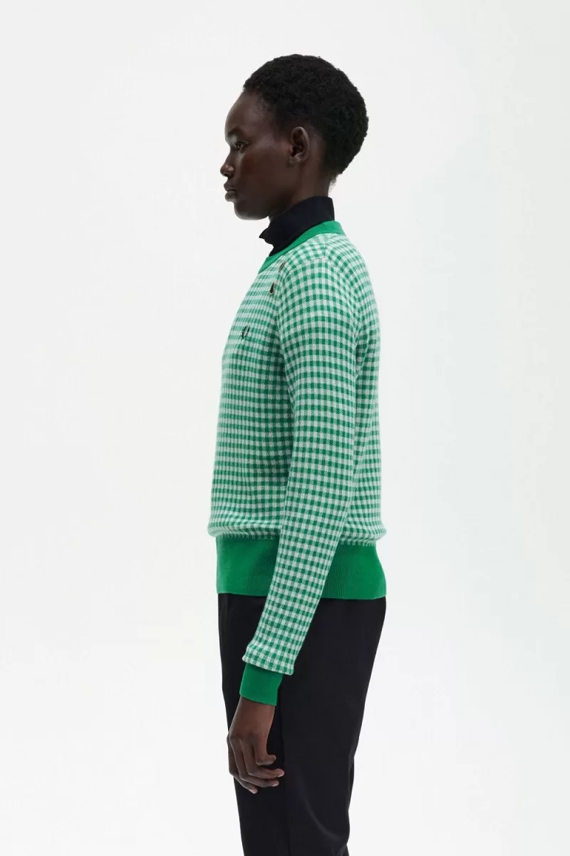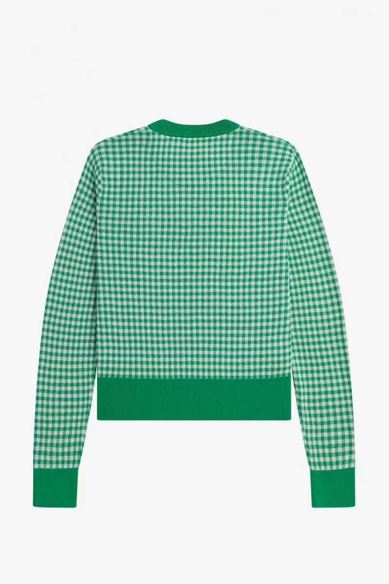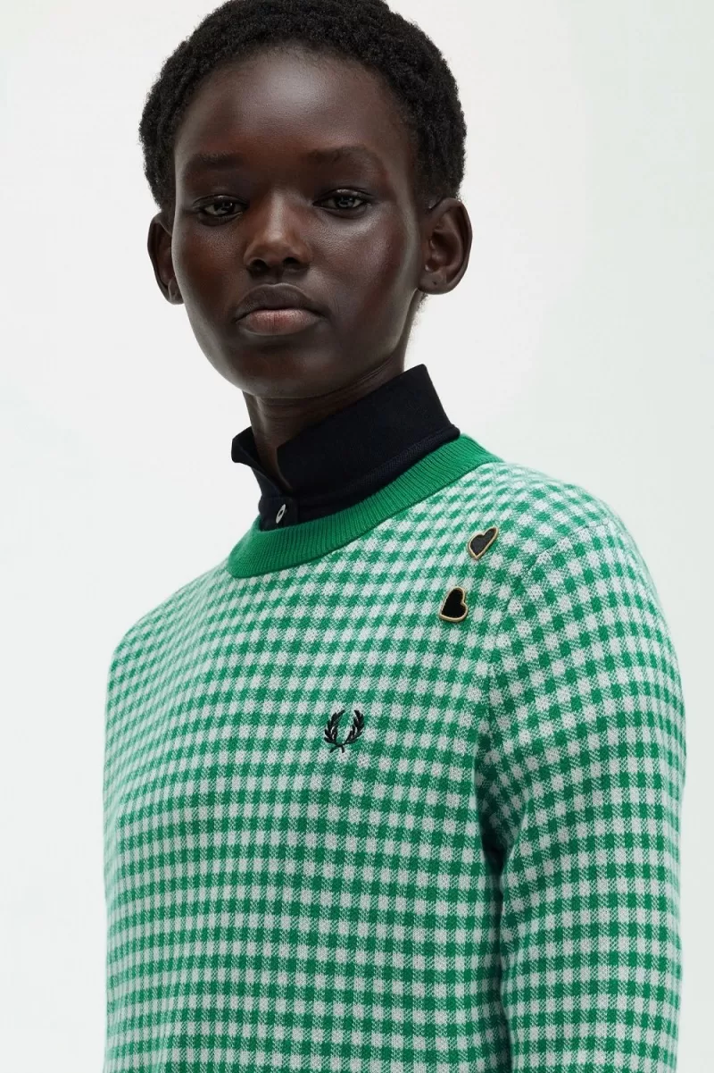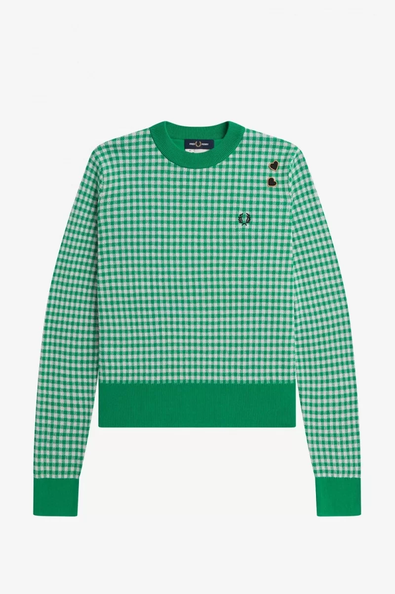Baumwollstrick / Normale Passform / Rundhalsausschnitt, Saum und Bündchen gerippt / Durchgehendes Gingham-Muster / Amy gestickte Liebesherzen über dem Lorbeerkranz