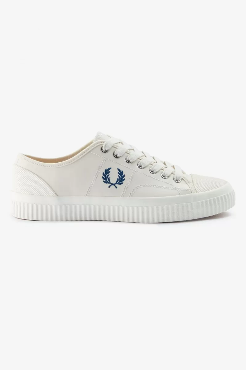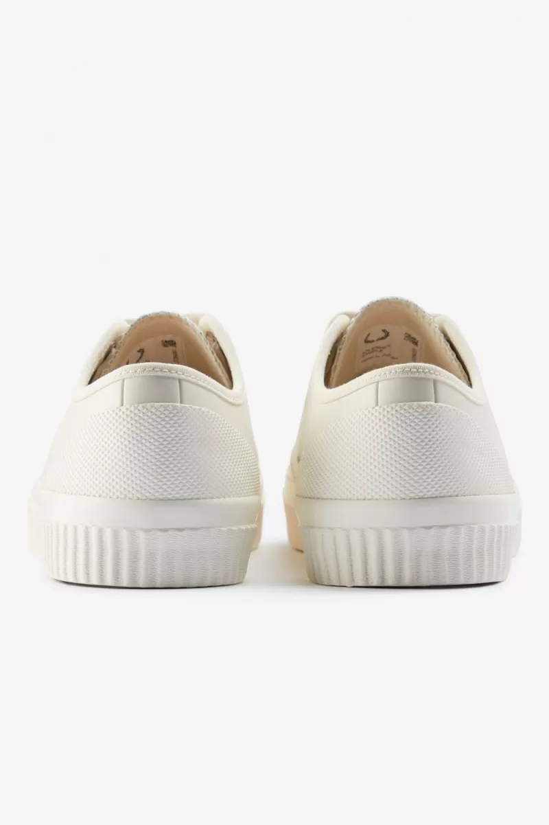 Eine härtere Variante auf unserem Klassiker Mit seinen Plimsolls verbindet der Hughes Sportbekleidung mit der subkulturellen Uniform. Mit einer dicken, gerippten Gummisohle und strukturierten Fersen- und Zehenverstärkungen versehen, sind die Merkmale der Arbeits- und Gebrauchskleidung entlehnt. Fred Perry durch und durch.