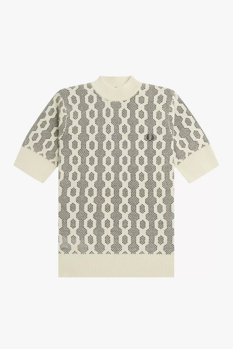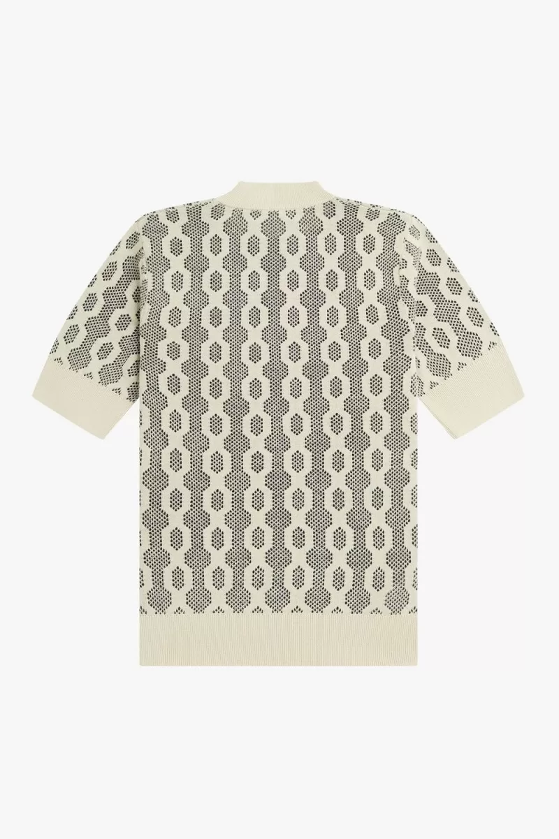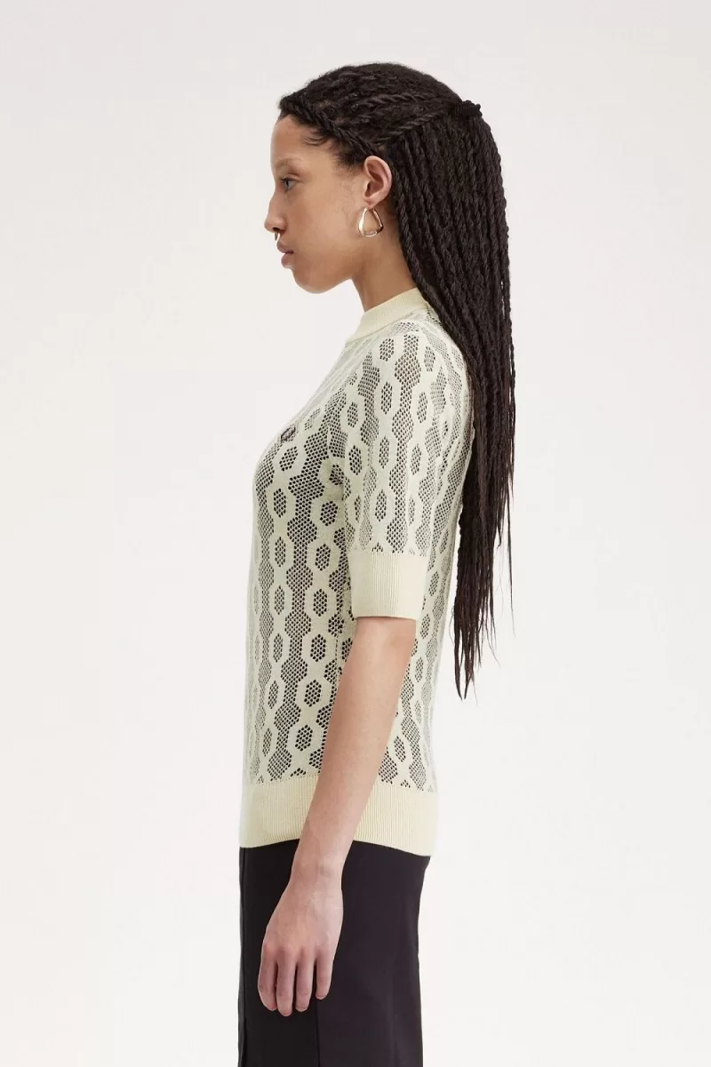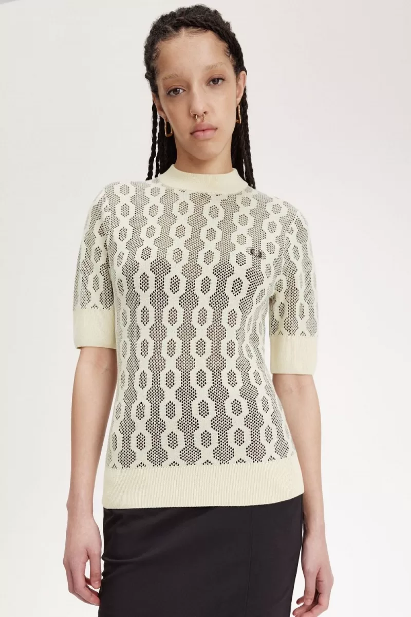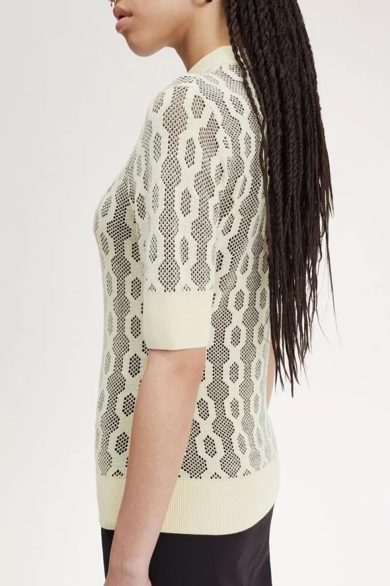 Unser offen gestrickter Kurzarmpullover ist inspiriert von das Abschiedsgefühl, Tage im Freien und Freds makelloser Urlaubslook während seiner Zeit in Jamaikas Runaway Bay – denken Sie an leichte Handtücher und hauchdünne Strandhemden. Abgerundet mit kontrastfarbenem doppelseitigem Netzstrick mit geometrischen Details und einem eleganten Stehkragen.