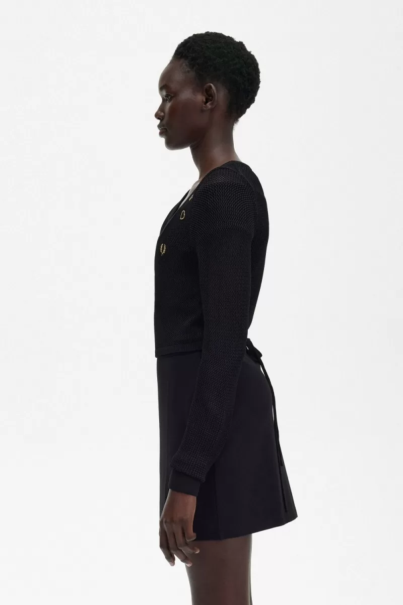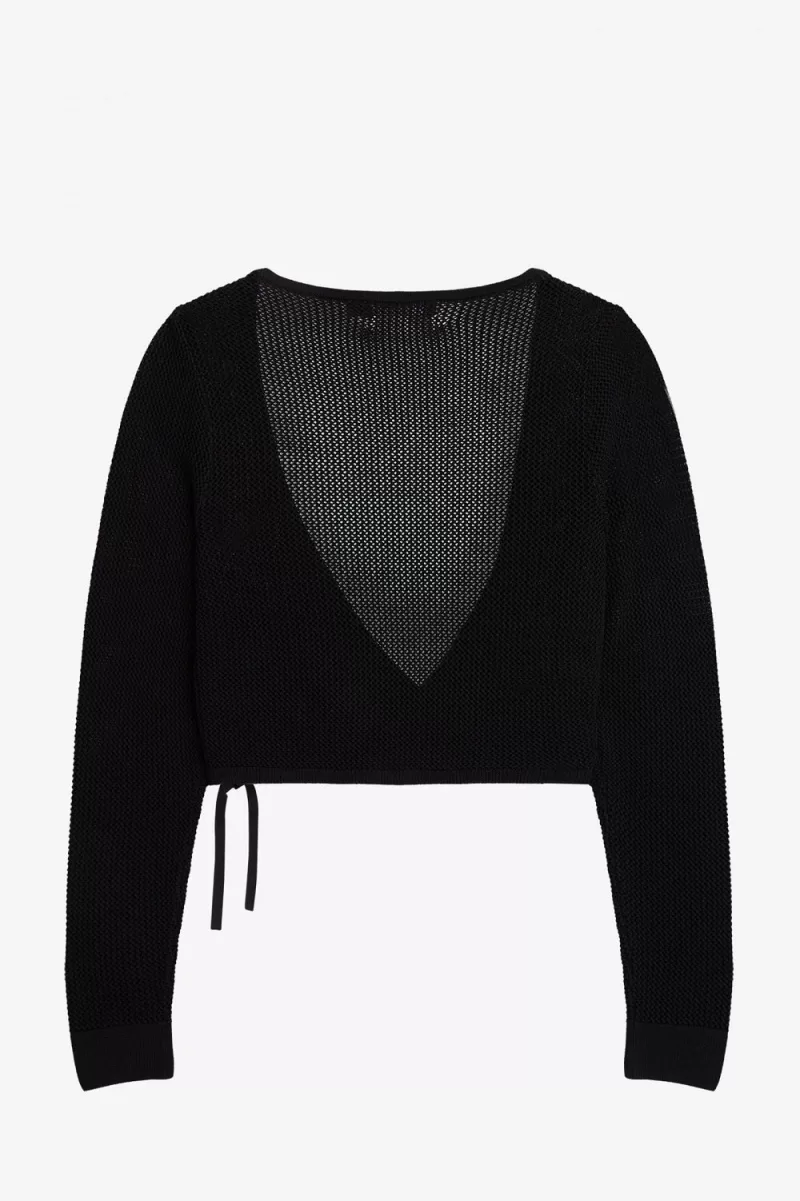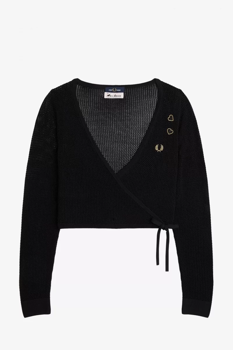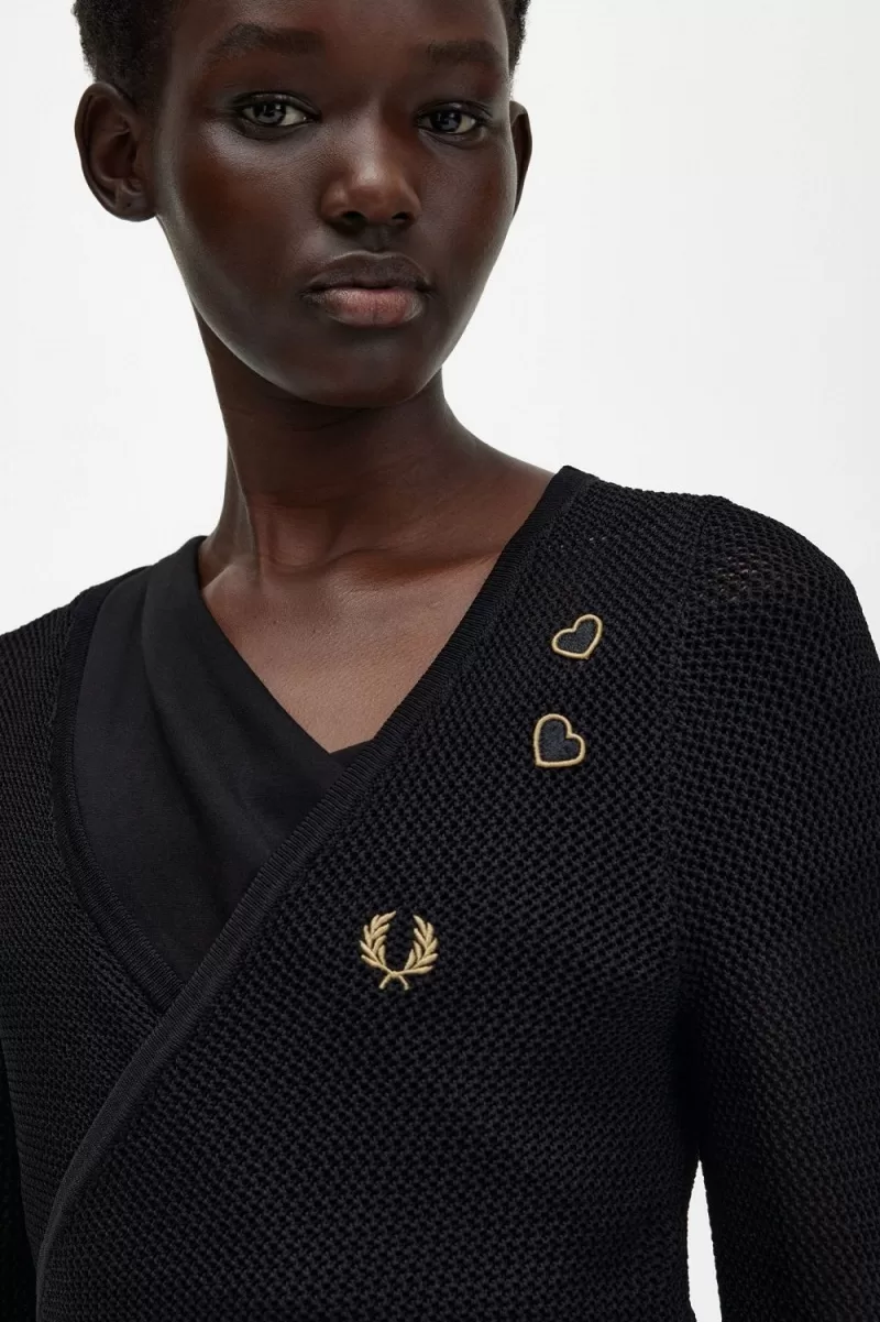 Mischung aus recycelter Viskose und recyceltem Nylon / Normale Passform / Kurze Länge / Amy-gestickte Liebesherz-Patches über Lorbeerkranz / Offene Strickstruktur mit selbst- Krawattendetails