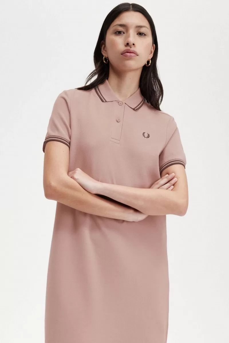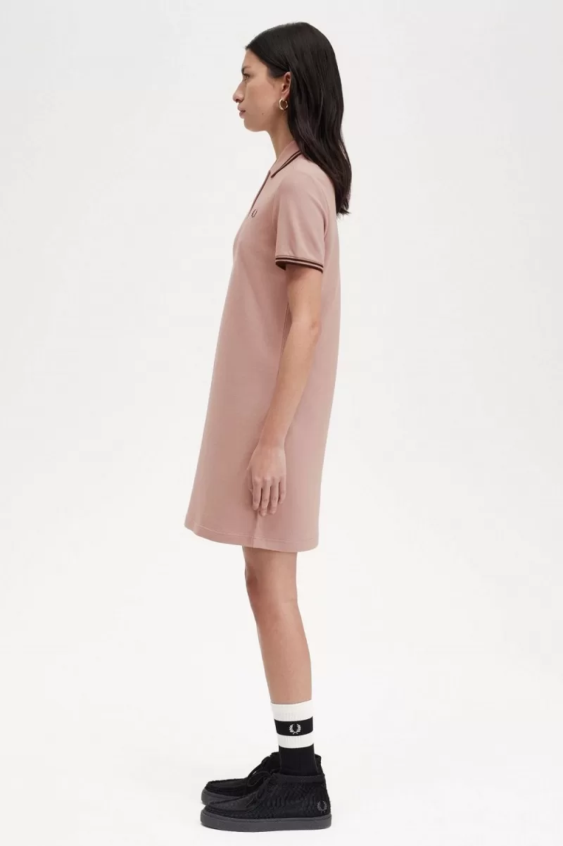 Unser Baumwoll-Piqué-Kleid mit charakteristischen Doppelstreifen an Kragen und Manschetten, inspiriert vom Fred Perry-Hemd.