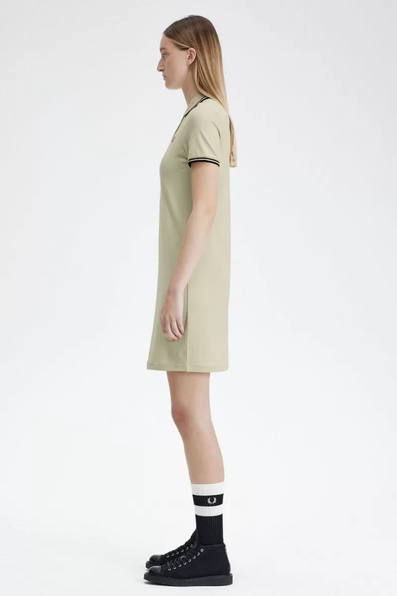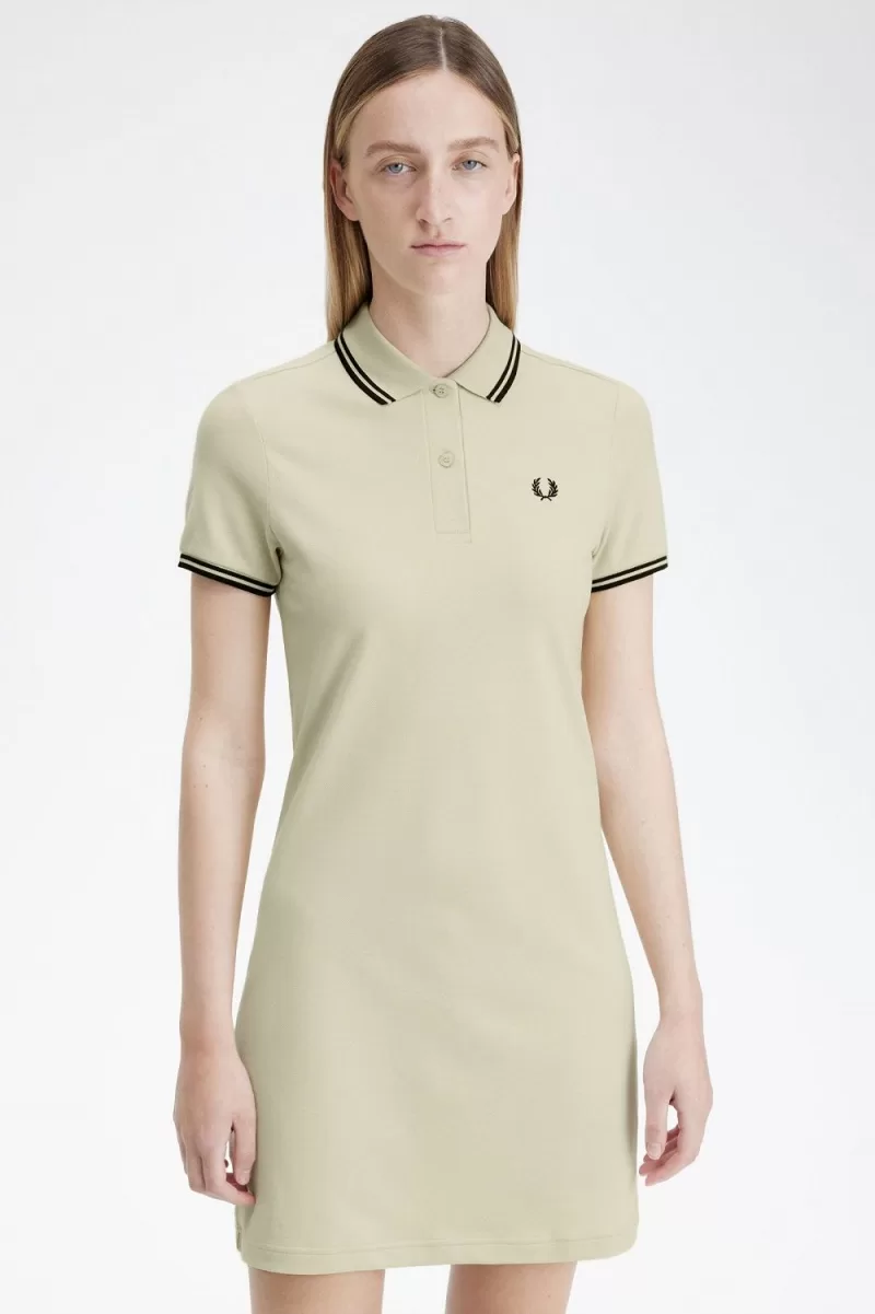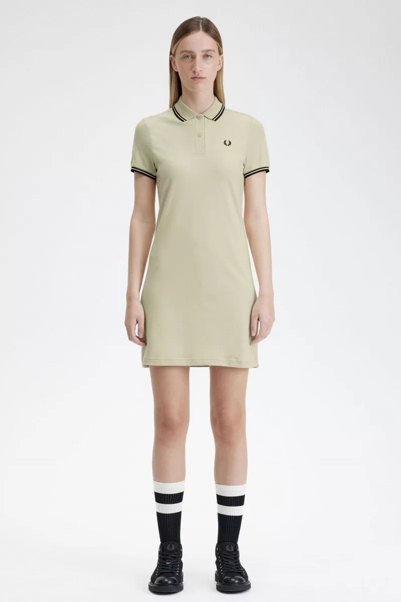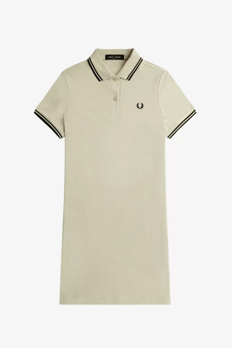 Unser charakteristisches Baumwoll-Piqué-Kleid mit Doppelstreifen, inspiriert vom Fred Perry-Hemd.