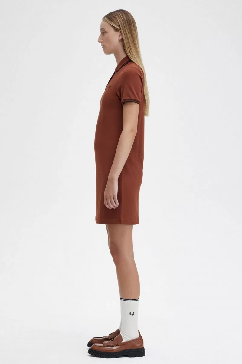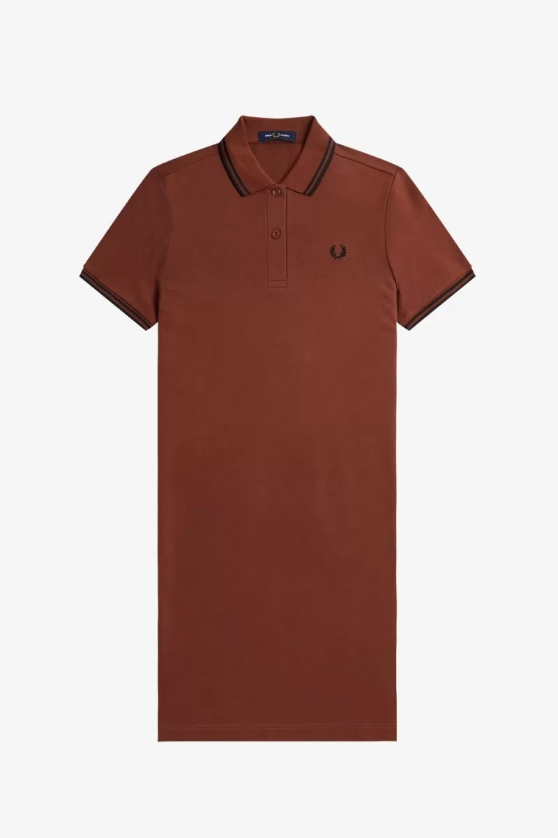 Unser Baumwoll-Piqué-Kleid mit charakteristischen Doppelstreifen an Kragen und Manschetten, inspiriert vom Fred Perry-Hemd.
