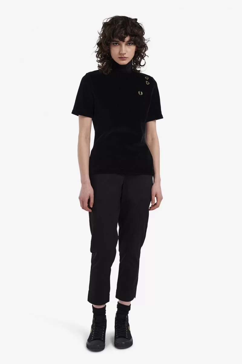 Unser Veloursoberteil ist eine Anspielung auf Amys Originaldesigns für uns und basiert auf dem unverwechselbaren Pin-up-Stil der Sängerin. Es verfügt über die charakteristische Liebesherz-Stickerei der Kollektion und ein elegantes, minimalistisches Design.