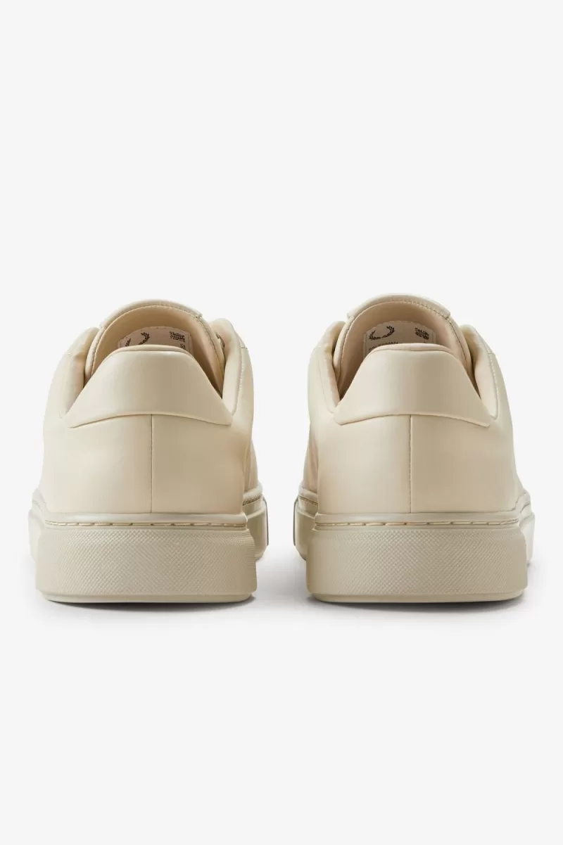 Der B71-Tennisschuh aus weichem Vollnarbenleder mit gesticktem Fred Perry-Branding auf dem Seitenteil.