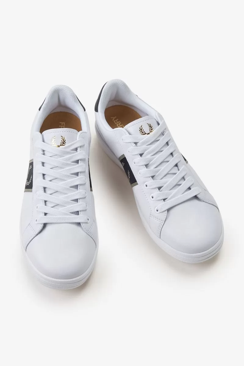 Jeder weiß, dass Schuhe das Outfit abrunden. Unser B721 bleibt der klassischen Tennistrainer-Silhouette treu und verfügt über sportliche Details, darunter ein gewebtes Seitenteil mit gesticktem Lorbeerkranz. Pure Fred Perry.