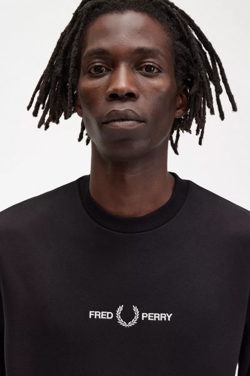 Ein Loopback-Baumwoll-Sweatshirt mit grafischer Branding-Stickerei auf der Brust.