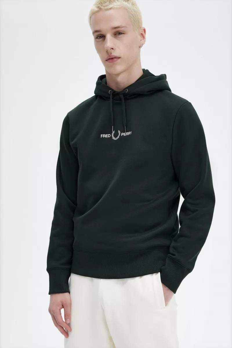 Sweatshirt aus recyceltem Polyester und Baumwollmischung / Normale Passform / Gerippt Bündchen und Saum / Kapuze mit Kordelzugbesatz / Gesticktes Laurel Wreath-Logo auf der Brustmitte