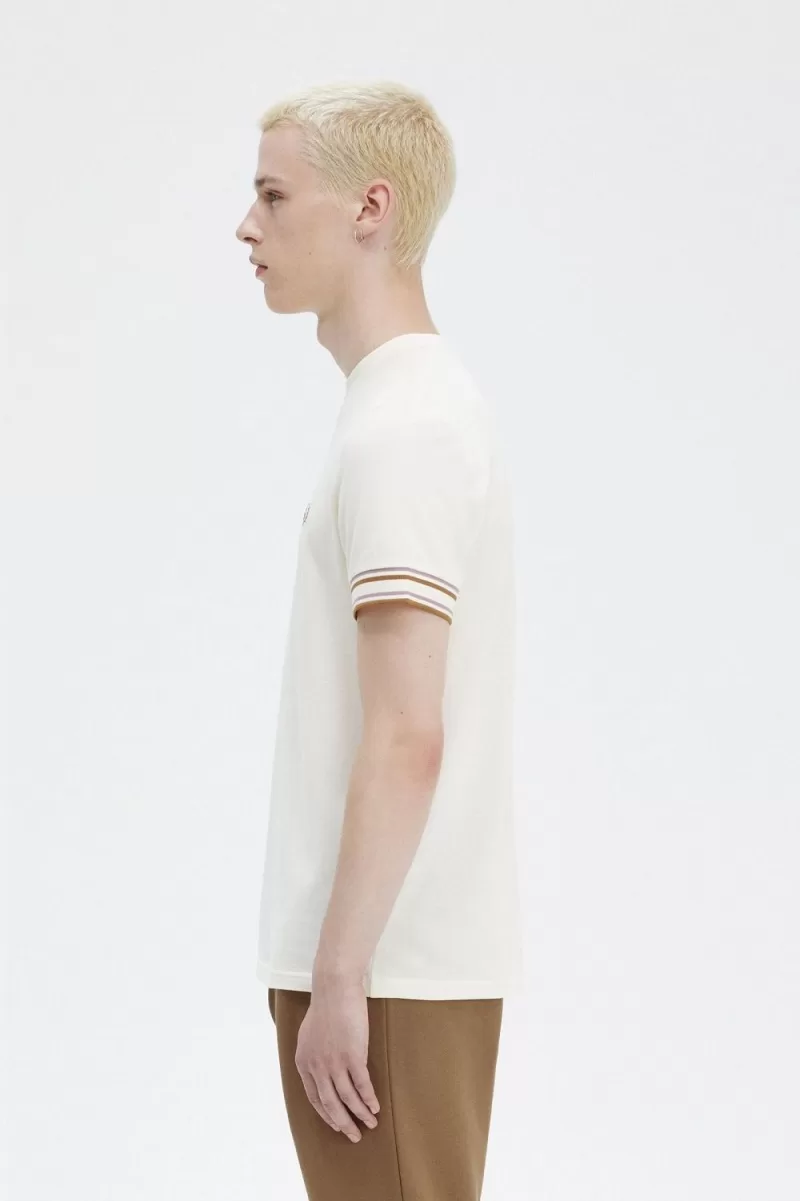 Leichter Baumwoll-Piqué-Stoff / Klassische Passform / Kontrastfarbener Rundhalsausschnitt / Bündchen mit Bündchen / Lorbeerkranz-Logostickerei auf der linken Brust