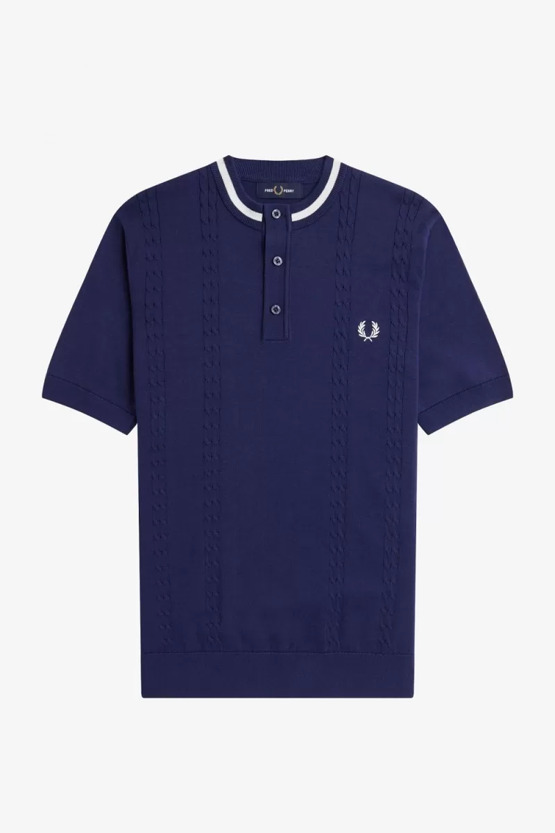 Taking Hinweise aus dem unverwechselbaren Kabel Unser Henley-Shirt ist wie der klassische Tennispullover gestrickt und begleitet Sie vom Platz zum Club. Mit einer Kante am Kragen für einen reinen Ausdruck der Marke.