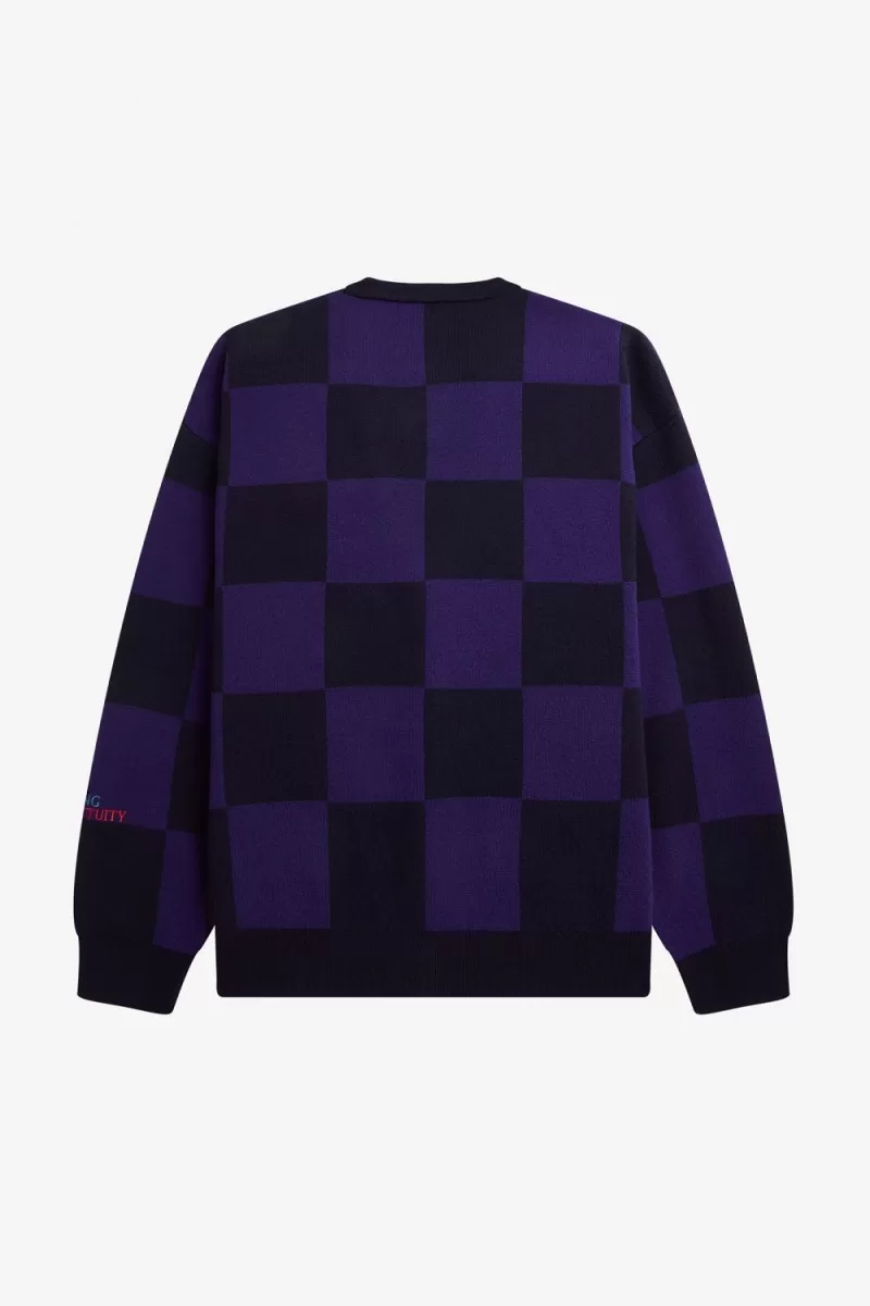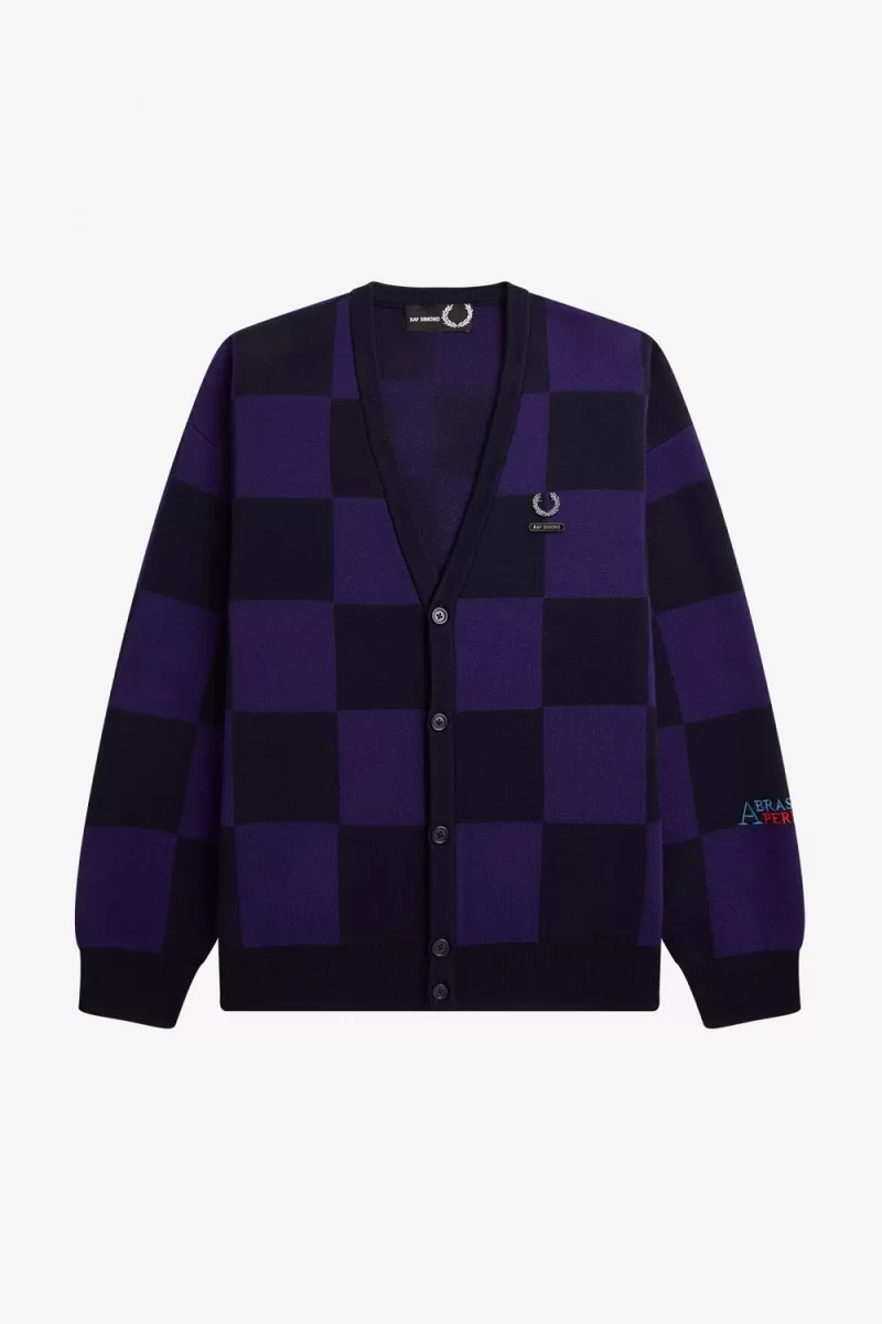Wir stellen stolz die letzte Folge von vor unsere letzte Zusammenarbeit mit Raf Simons. Als einer der berühmtesten Designer der modernen Geschichte lässt sich Simons von den späten 80ern und frühen 90ern inspirieren. Eine Zeit, in der die Arbeiterklasse in Großbritannien hart war, aber Gemeinschaften von Menschen zusammenkamen und sich in Musik, Mode und Freundschaft vereinten. Als Anspielung auf die leuchtenden Farben der Innenräume der frühen 90er Jahre wird die bekannte Fred Perry-Silhouette des V-Ausschnitt-Cardigans durch die Linse von Simons mit einer übergroßen Passform und einem kräftigen Schachbrettmuster dargestellt. Abgerundet mit auffälligen Fred-Perry-Details, darunter Lorbeerkranz- und Raf-Simons-Metallabzeichen auf der Brust.