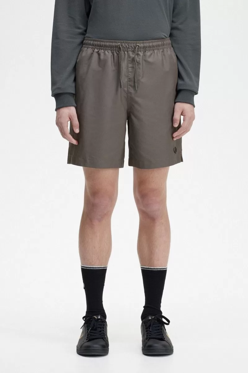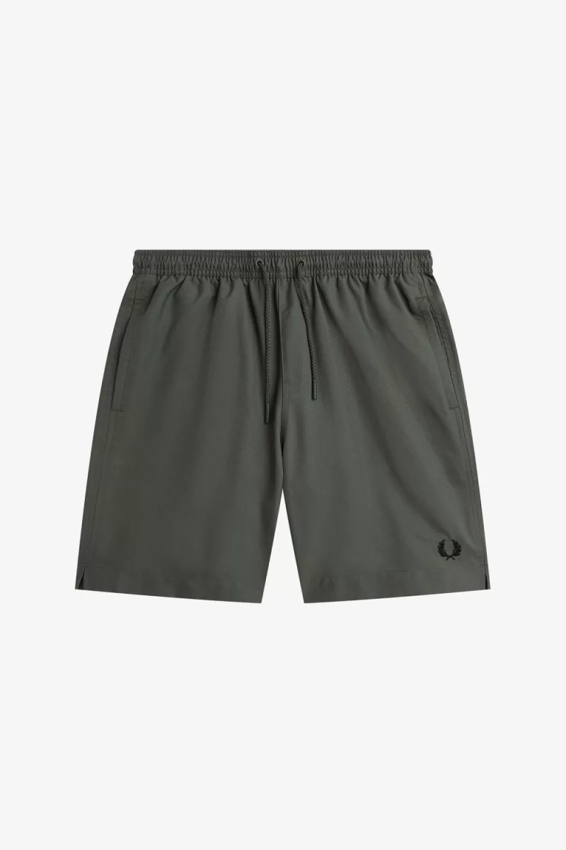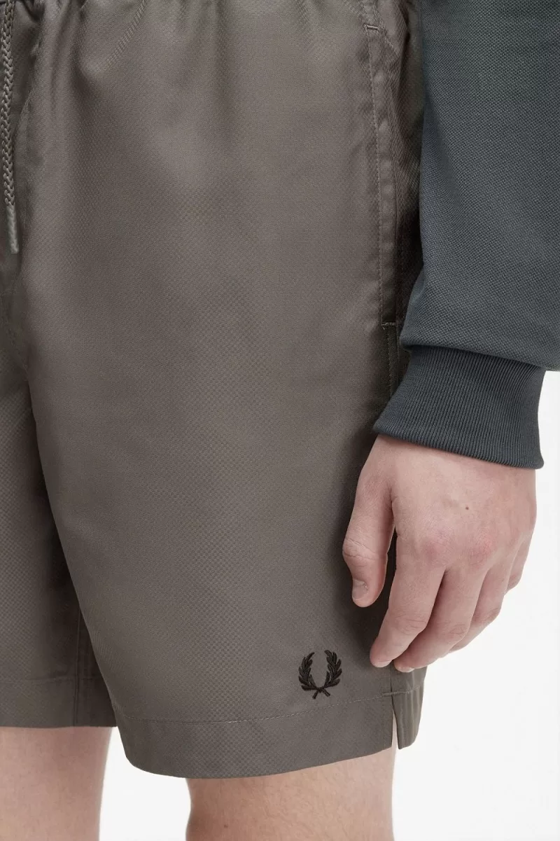 Polyester-Badeshorts-Stoff / Elastischer Bund mit Kordelzug / Mesh-Futter / Gesticktes Lorbeerkranz-Logo