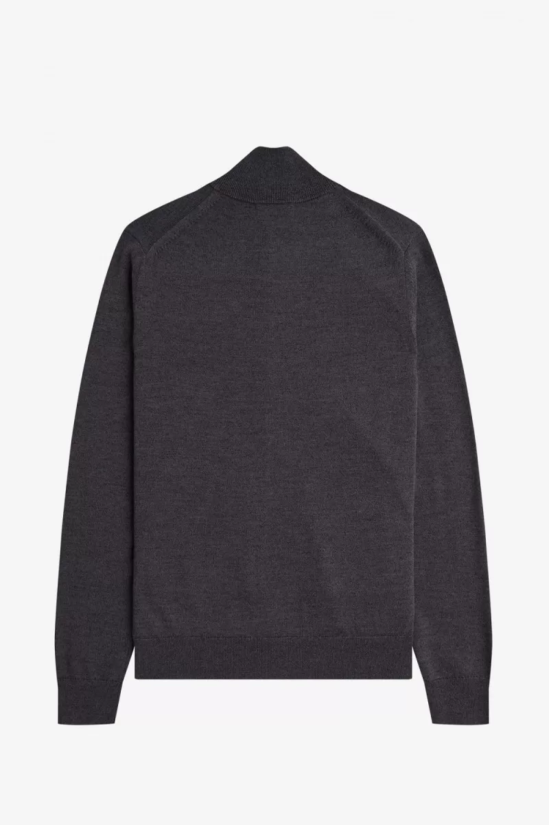 Unsere klassische Strickjacke mit durchgehendem Reißverschluss ist schick Basic mit dezenten Fred Perry-Details. Mit einer leicht taillierten Silhouette und einem hohen Halsausschnitt ist unser Pullover mit Blick auf die klaren Linien des Modernismus entworfen.