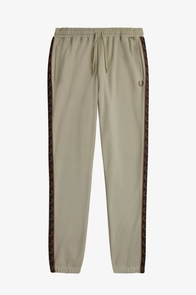 Trikotstoff aus einer Mischung aus Baumwolle und recyceltem Polyester / Klassische Passform / Elastischer Bund und Kordelzug / Leistentaschen / Tracktape und Lorbeerkranz-Stickerei auf dem linken Oberschenkel