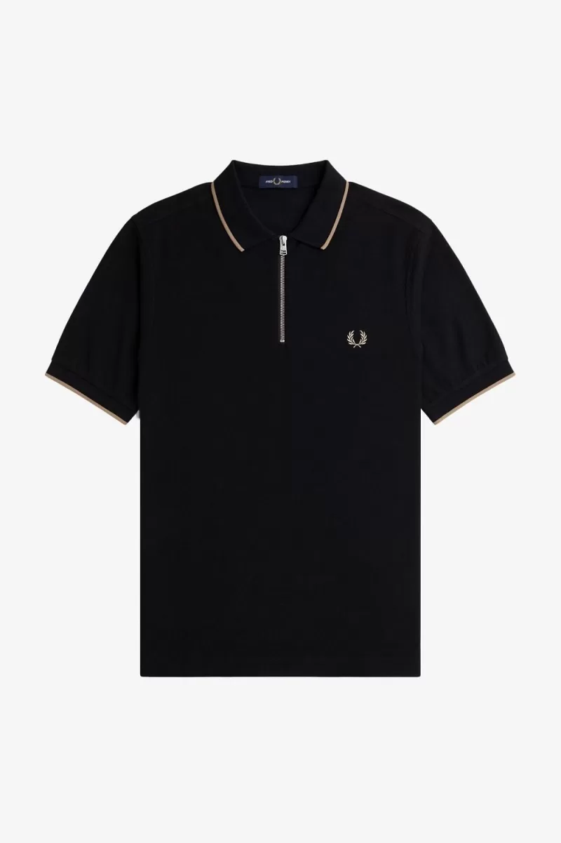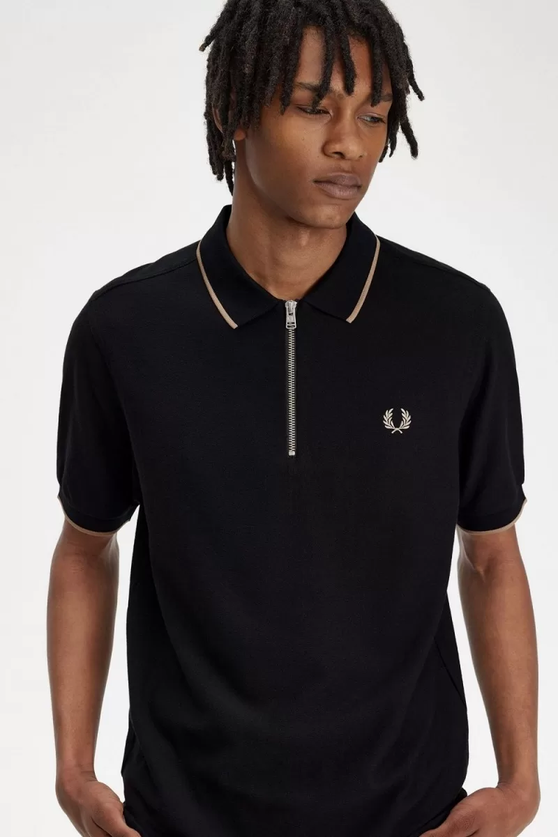 Alles begann mit dem Fred Perry-Poloshirt. Diese Version fühlt sich elegant, leicht und modern an und verfügt über einen Metallreißverschluss anstelle der üblichen Knopfleiste. Abgerundet durch einzelne Streifen am Kragen und an den Manschetten sowie den gestickten Lorbeerkranz, wo er immer zu finden ist.