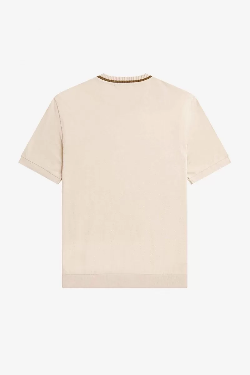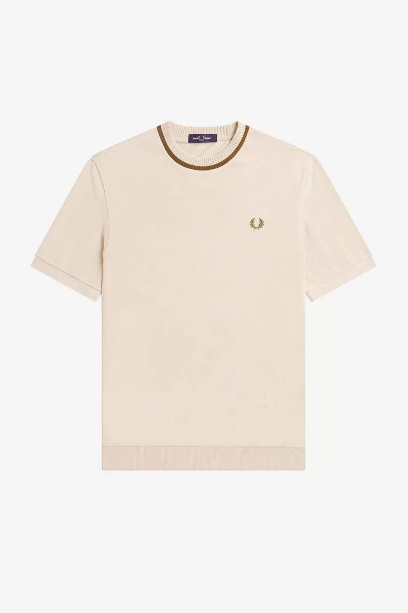 Unser originelles T-Shirt mit Rundhalsausschnitt, hergestellt in Portugal und hergestellt aus einem raffinierten, strukturierten Baumwollpiqué. Entworfen mit dicken Rippen und einem hohen Rundhalsausschnitt mit einer Spitze.