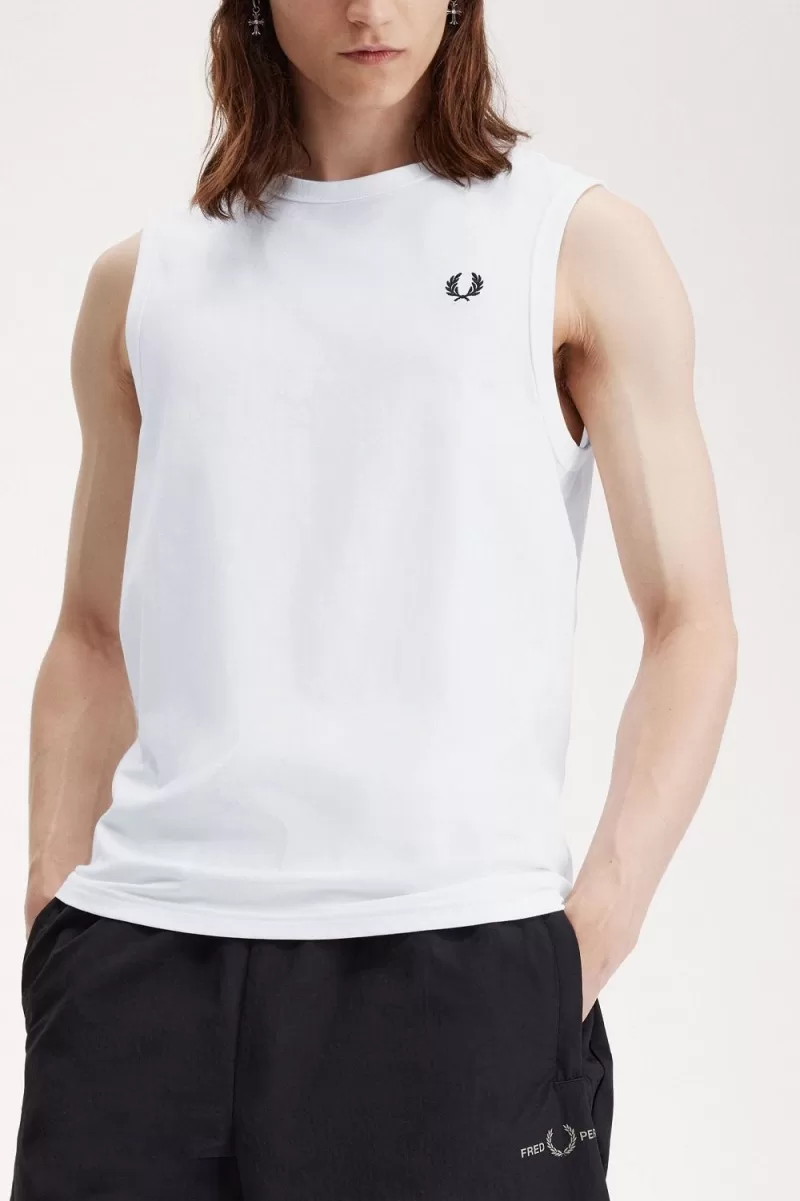 Eine Weste aus Baumwolljersey, die nur mit dem gestickten Laurel Wreath-Logo versehen ist.