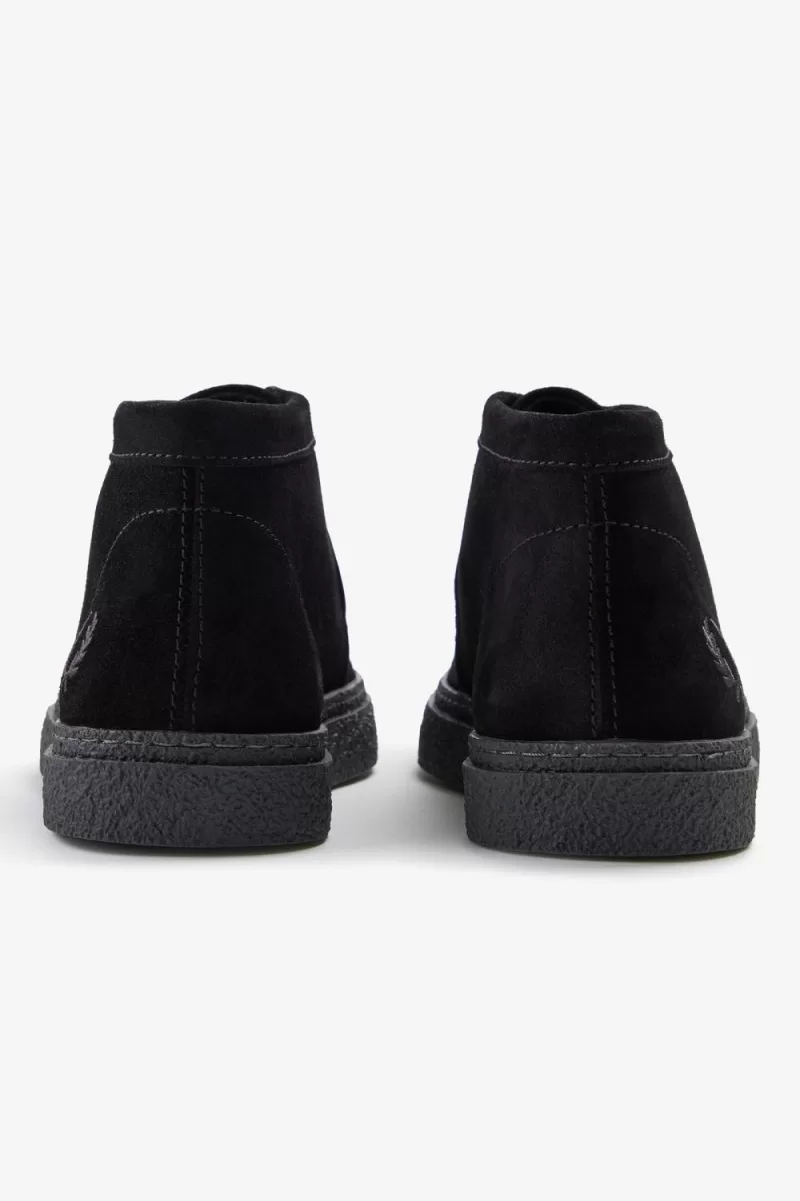 Hergestellt in Portugal / Grobe Gummisohle mit Kreppeffekt / Obermaterial aus Wildleder mit Paspelierung / Flache Schnürsenkel und Twill-Innensohle / Geprägter Lorbeerkranz auf dem Obermaterial