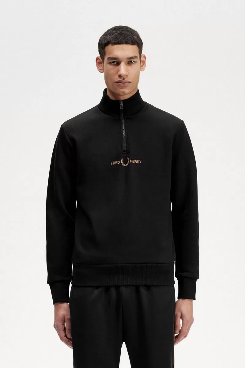 Double Graphic Half Zip Herren-Sweatshirt Schwarz