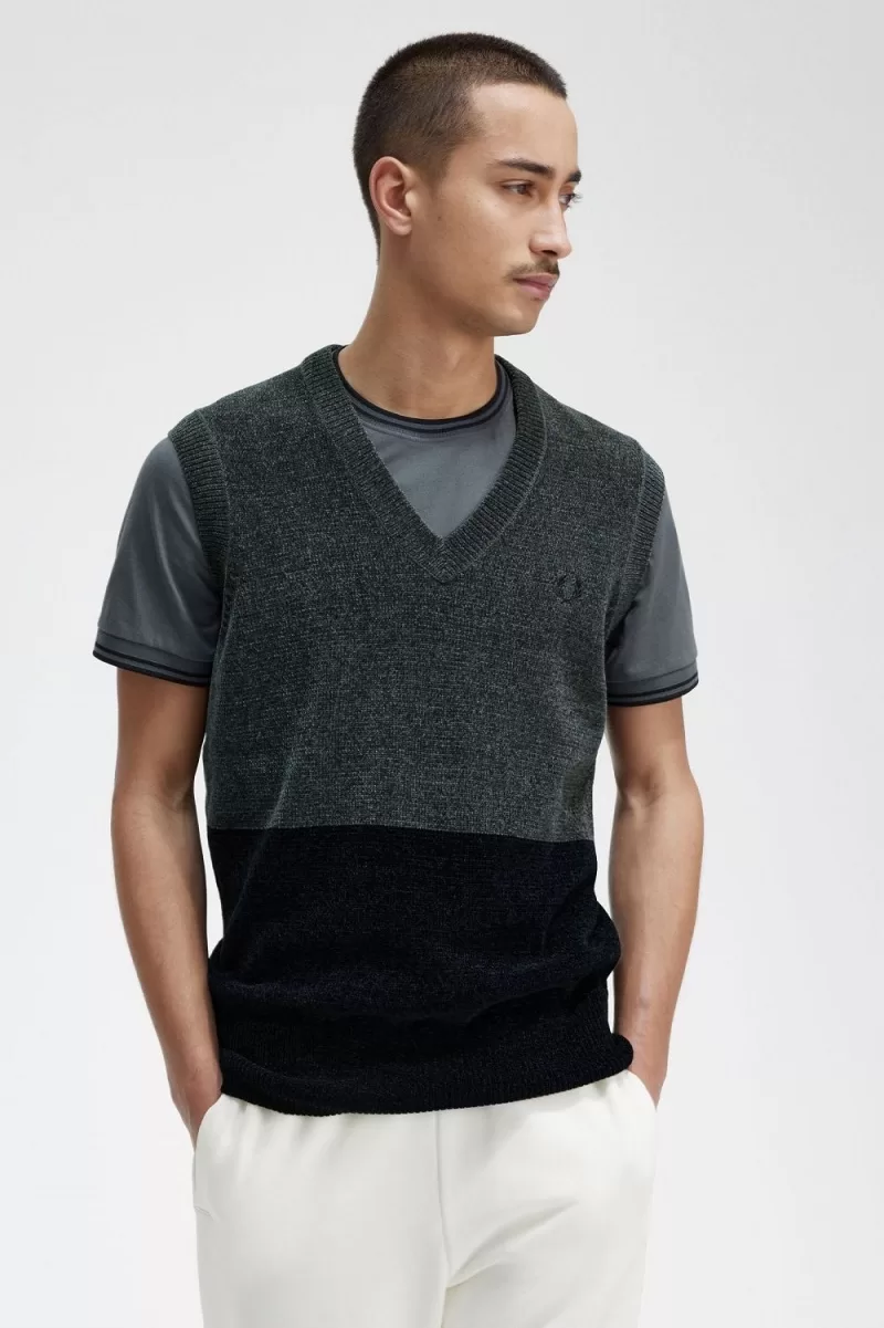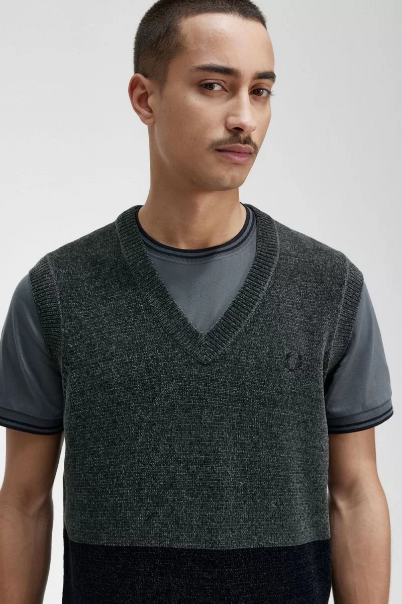 Unser Colour-Block-Strick-Tanktop aus weichem, lichteinfangendem Chenille.