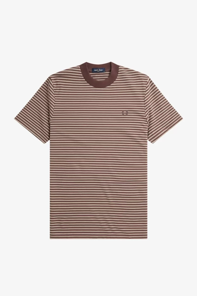 Fine Stripe Heavyweight Herren-T-Shirt, dunkelrot, warmes Grau