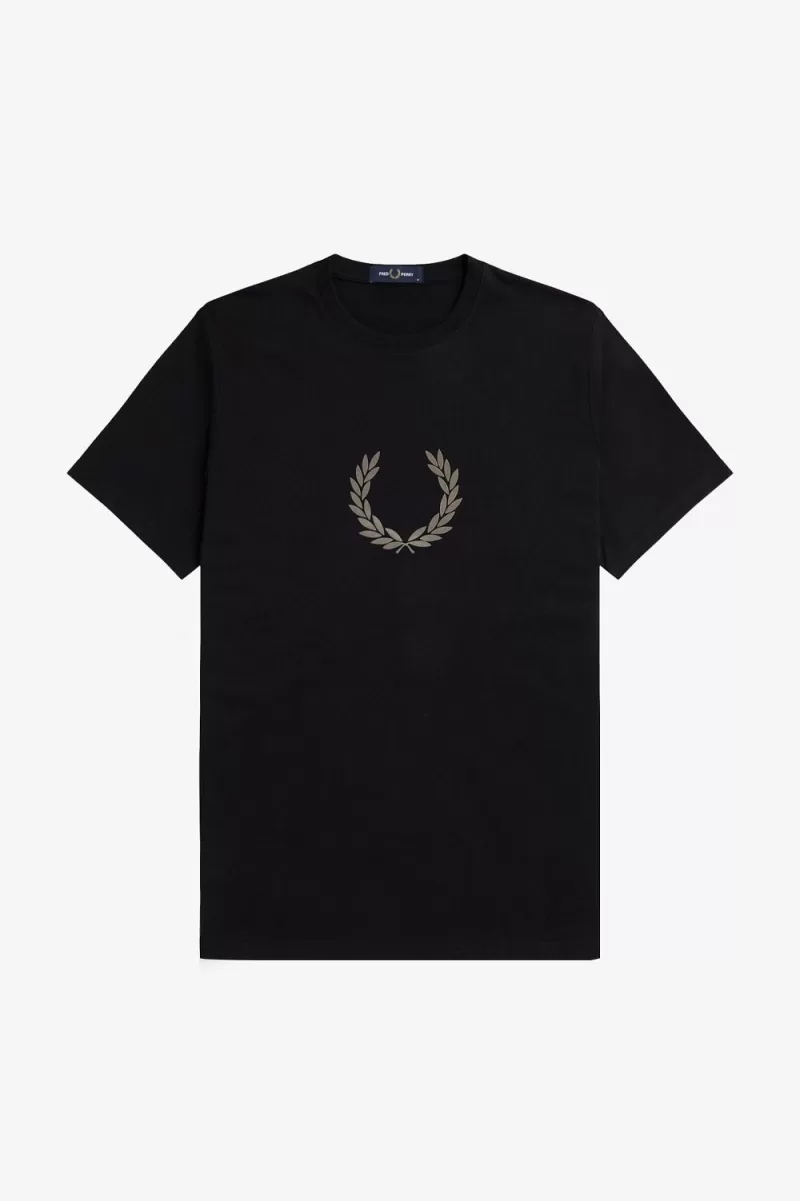 Ein T-Shirt aus Baumwolljersey mit Rundhalsausschnitt und geflocktem Lorbeerkranz-Design vorne in der Mitte.