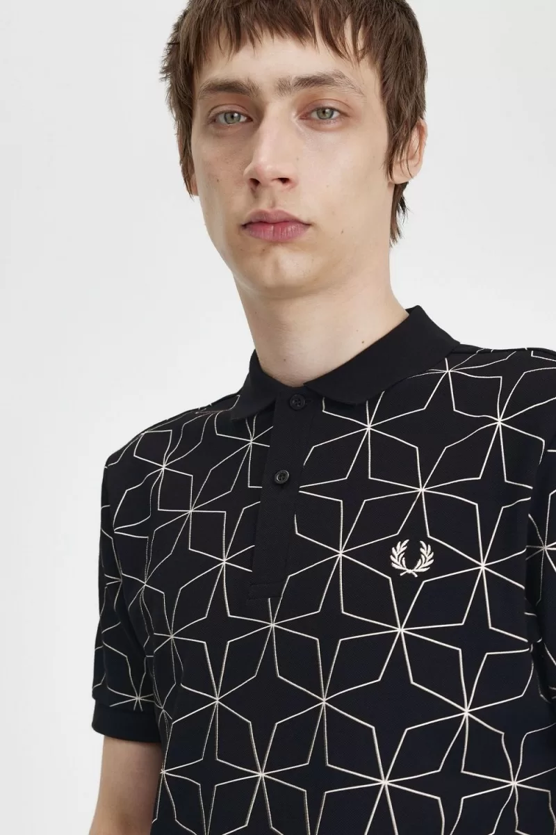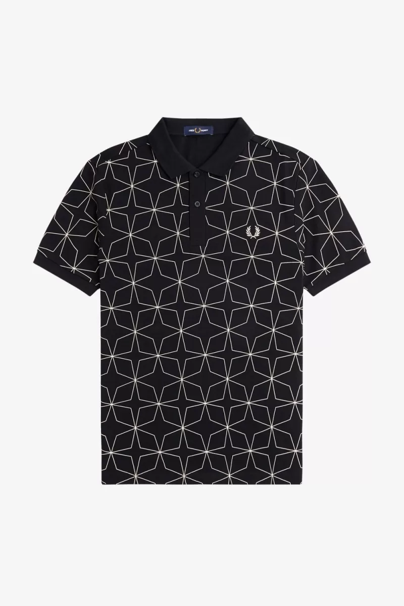Wir kleiden das Poloshirt von Fred Perry mit einem geometrischen Design, das von unserem Archiv inspiriert wurde.