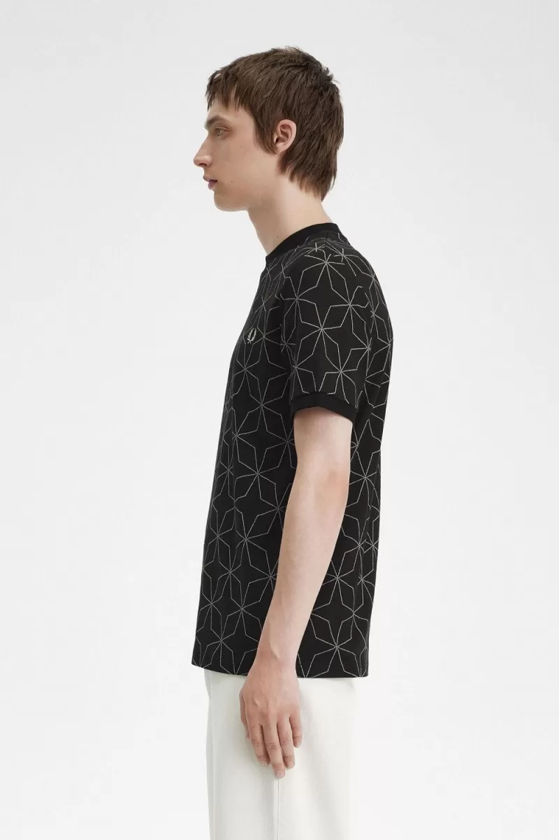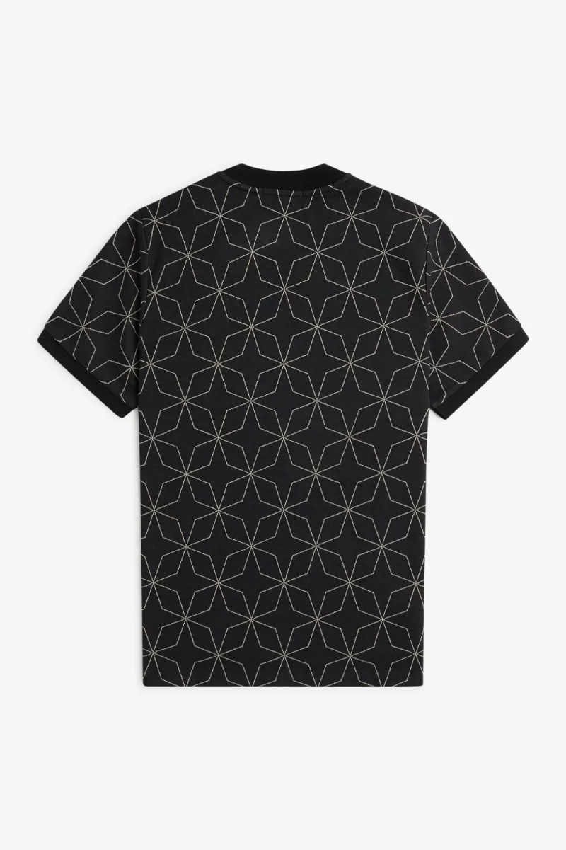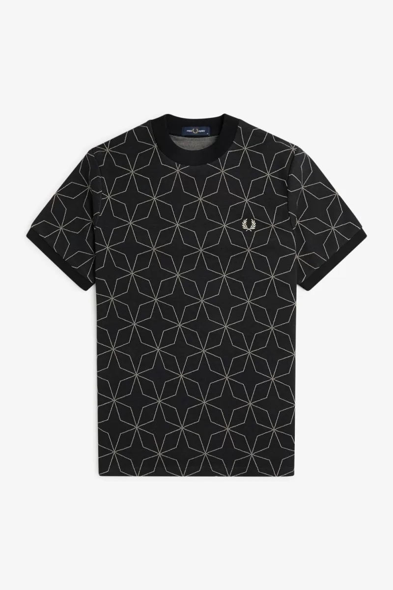 Ein doppelt gestricktes Jacquard-T-Shirt In unserer charakteristischen Passform erhält dieser vom Archiv inspirierte geometrische Stil ein modernes Update mit einer feinen Linieninterpretation und verfügt über tiefe Flachstrickbesätze für ein weiches Handgefühl.