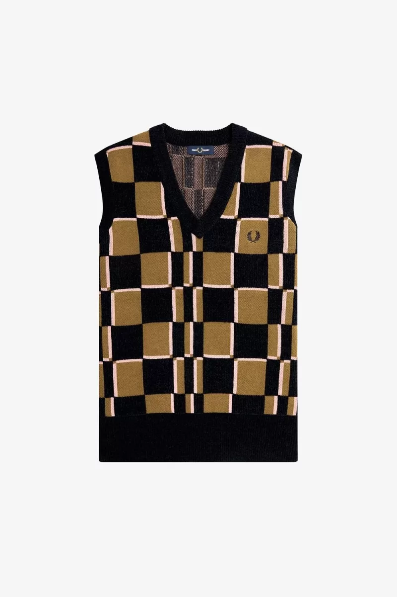 Unsere Glitch-Muster-Designs beziehen sich auf die Bildschirme und Schallwellen der Rave- und Techno-Szene der 90er Jahre, wenn kräftige Farben und abstrakte Formen orientierten sich an der mehrfarbigen Sportbekleidung, die im europäischen Tenniszirkus auftaucht. Unser Glitch-Schachbrett-Tanktop verfügt über die charakteristische Laurel Wreath-Stickerei auf der Brust. Unverkennbar Fred Perry.
