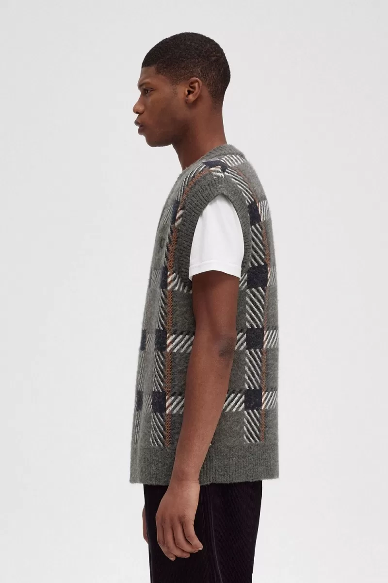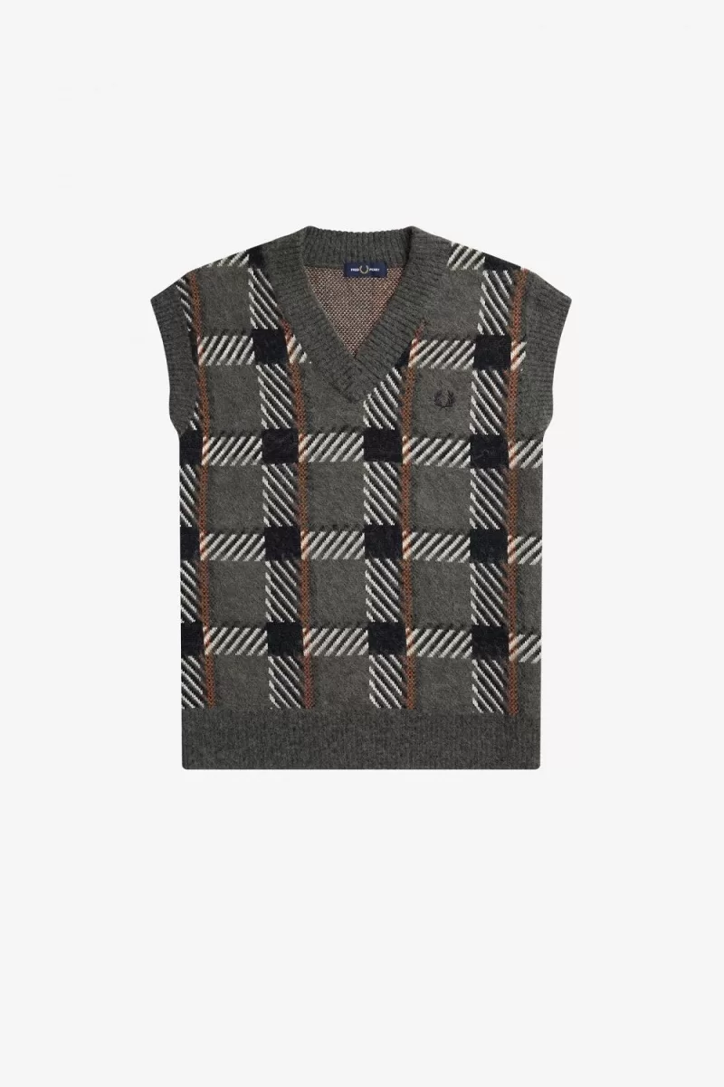 Die Marke Fred Perry hat diese immer ein wenig äußerlich und leicht an den Rändern repräsentiert. Inspiriert von den lässigen Mohair-Strickstoffen der britischen Punkszene, vereint unser glitch-tartanfarbenes Strick-Tanktop luxuriöse, strukturierte Strickstoffe mit einem kräftigen Jacquard-Muster. Legen Sie es über ein neutrales Outfit, um ihm Struktur und Farbe zu verleihen – oder, noch besser, kombinieren Sie es mit etwas noch Auffälligerem.