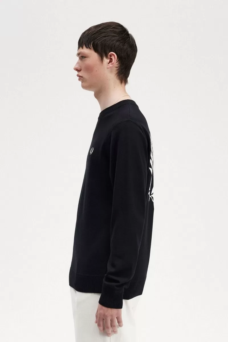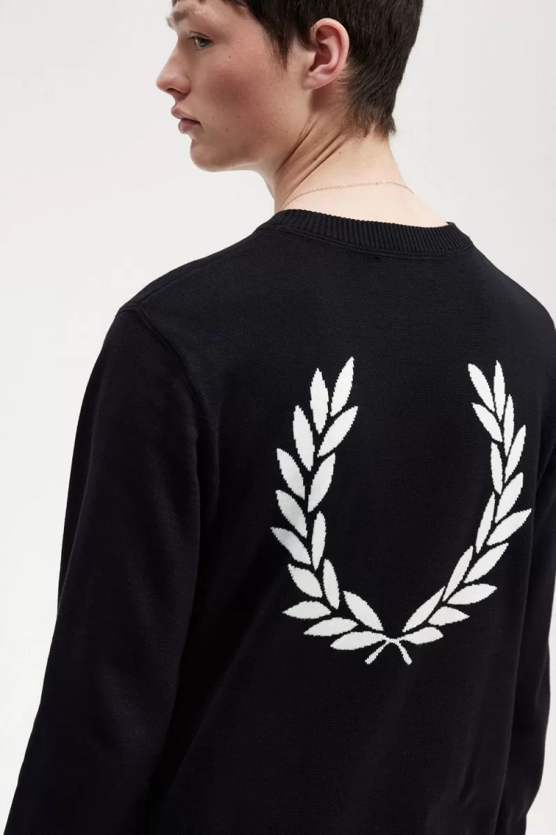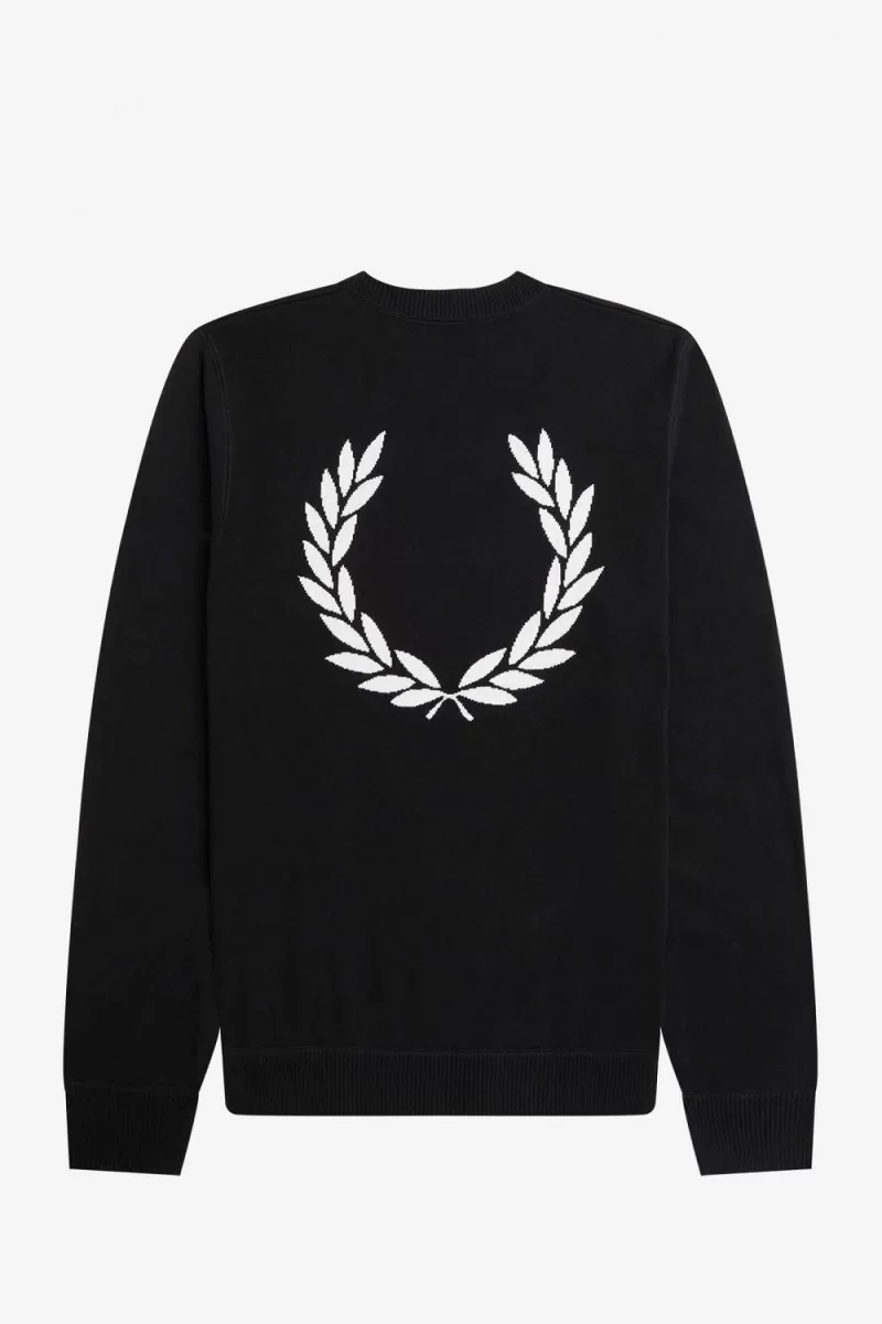 Ein Jersey-Strickpullover mit einem übergroßen Lorbeerkranz in der Mitte des Rückens.
