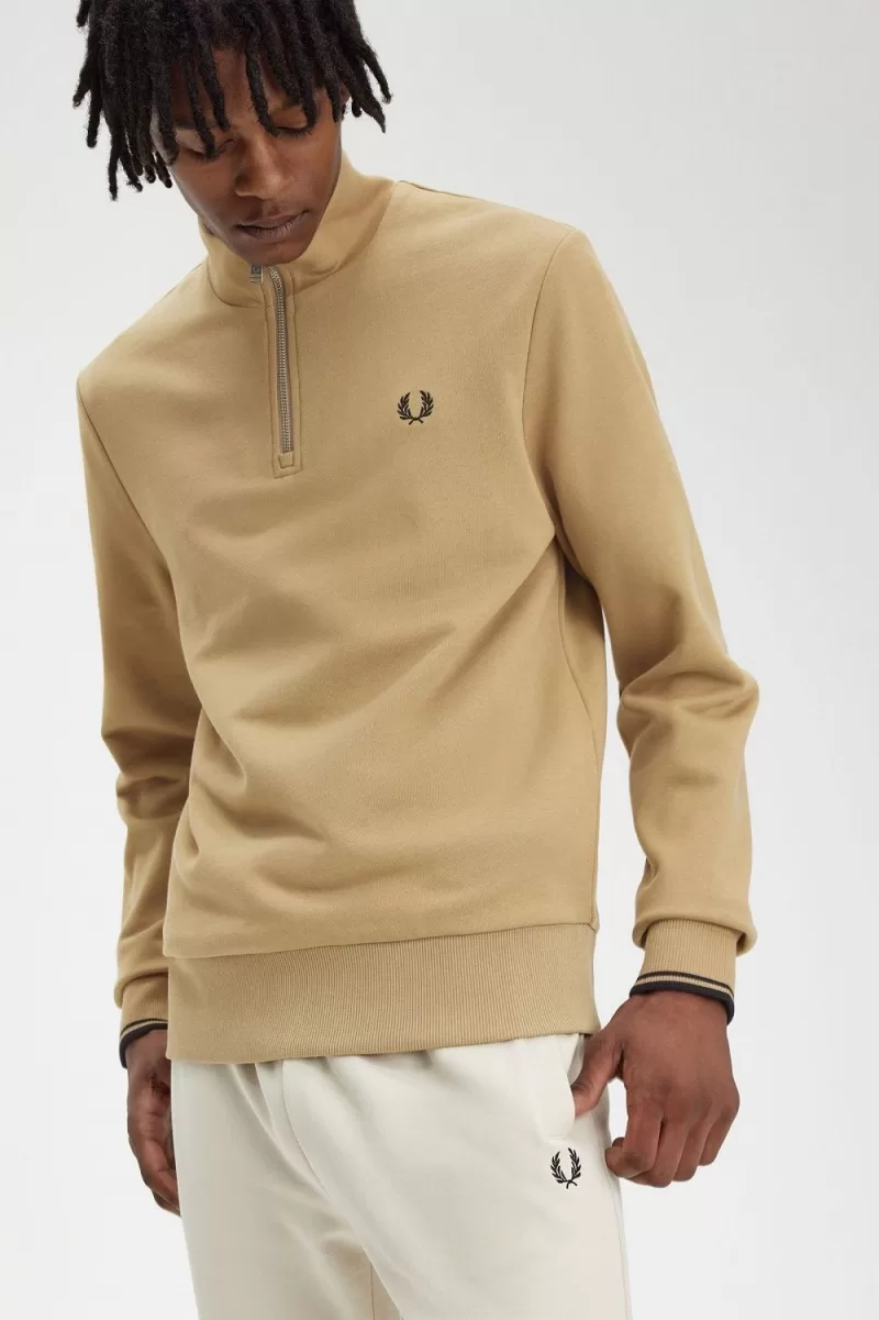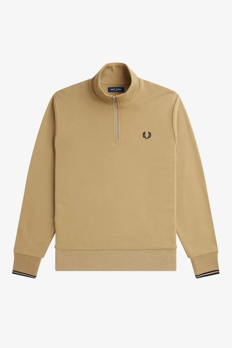 Unser Baumwoll-Loopback-Sweatshirt mit halbem Reißverschluss und Stehkragen.