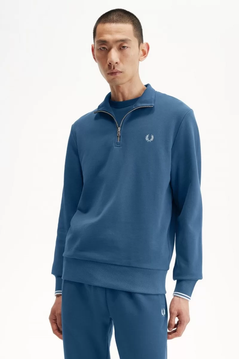 Half Zip Herren-Sweatshirts Mitternachtsblau Hellaqua