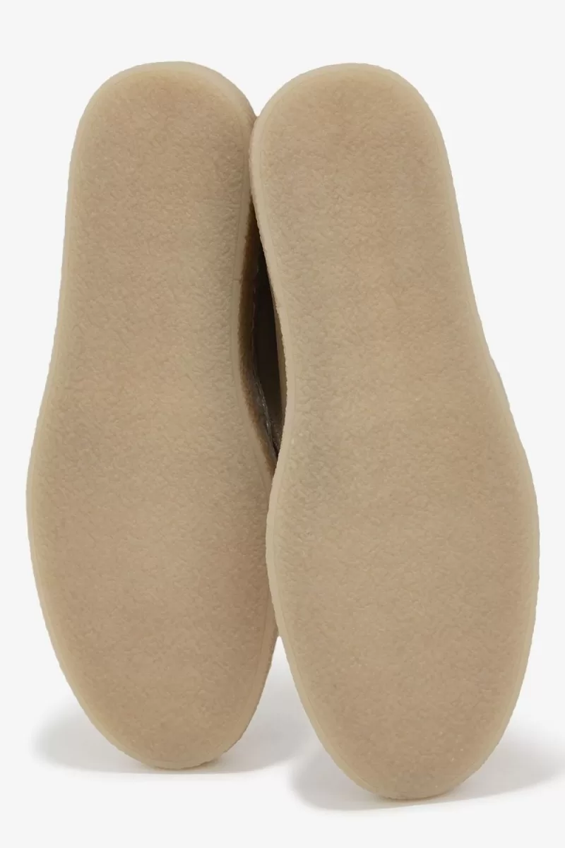 Ursprünglich in Militärkleidung gesehen, wurde der Wüstenstiefel von übernommen Britische Subkulturen für seine elegante Silhouette und sein leichtes, strapazierfähiges Design. Diese mit ihrem charakteristischen Wildleder-Obermaterial neu aufgelegte Version ist eine härtere Variante des klassischen Stiefels mit klobiger Kreppsohle, inspiriert von der subkulturellen Uniform.