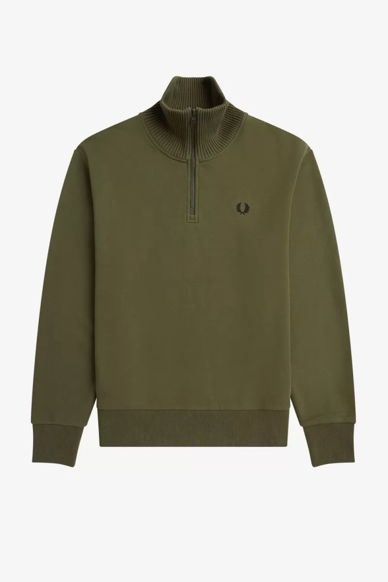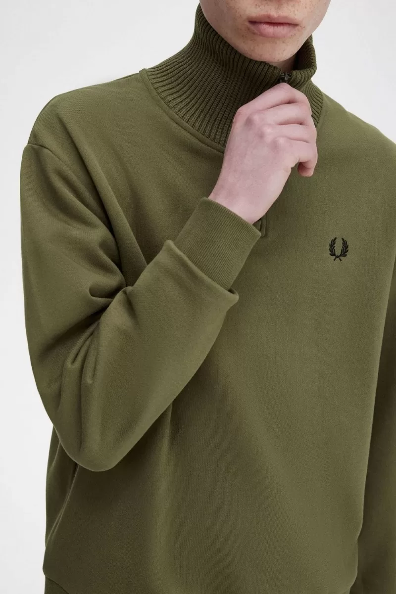 Herren-Sweatshirt mit gestricktem Rand und Reißverschluss, Uniformgrün
