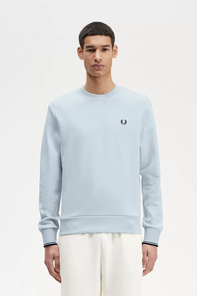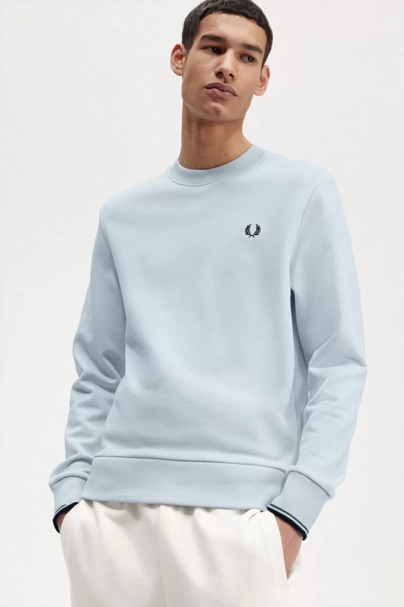 Das Baumwoll-Sweatshirt wird von Sportlern bei Wintertrainingseinheiten verwendet ein altehrwürdiger Klassiker. Unser Rundhals-Sweatshirt verfügt über dezente Designdetails von Fred Perry, wie Streifen an den Bündchen und den allgegenwärtigen Lorbeerkranz, der stolz auf die Brust gestickt ist. Für den Lagenlook konzipiert.