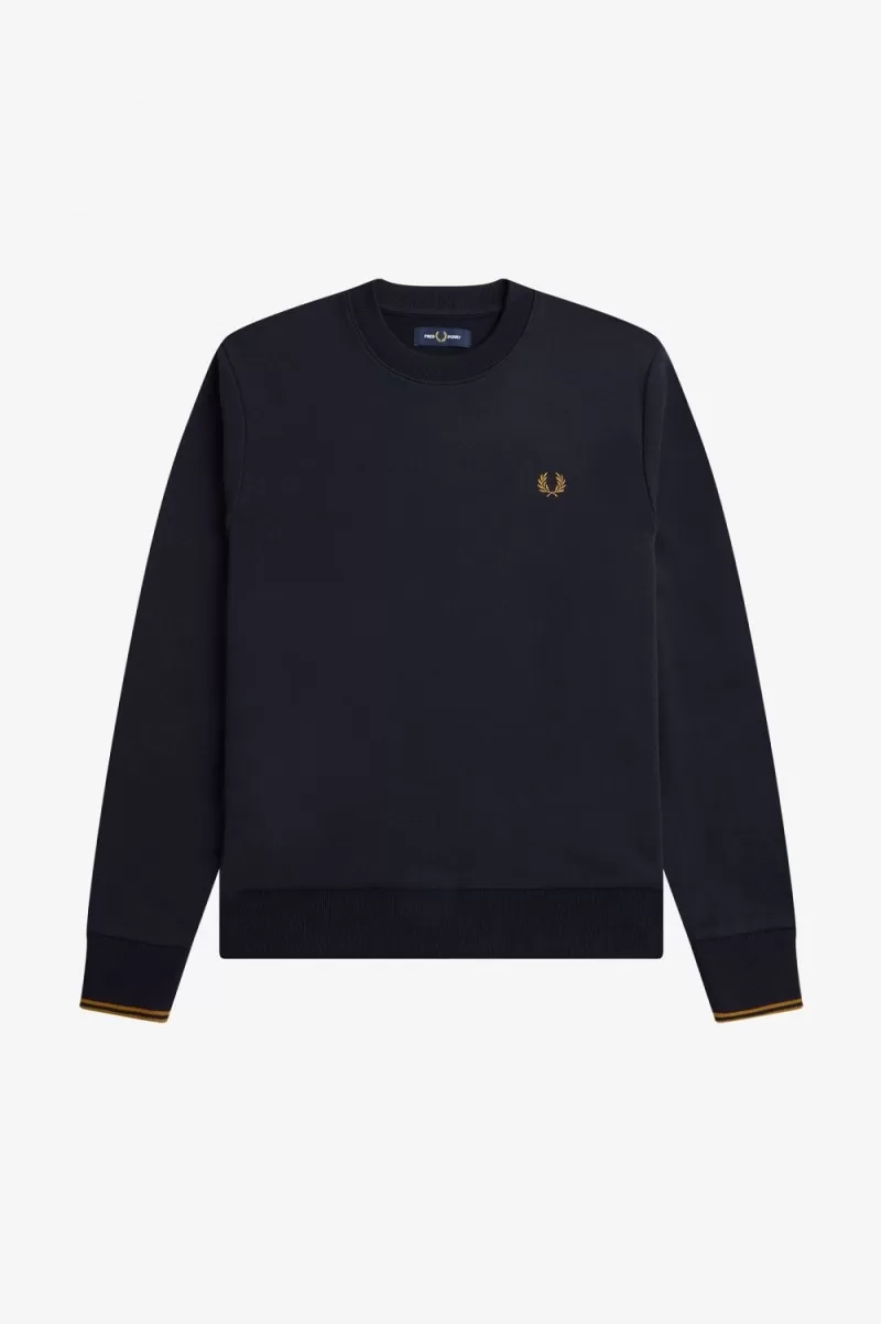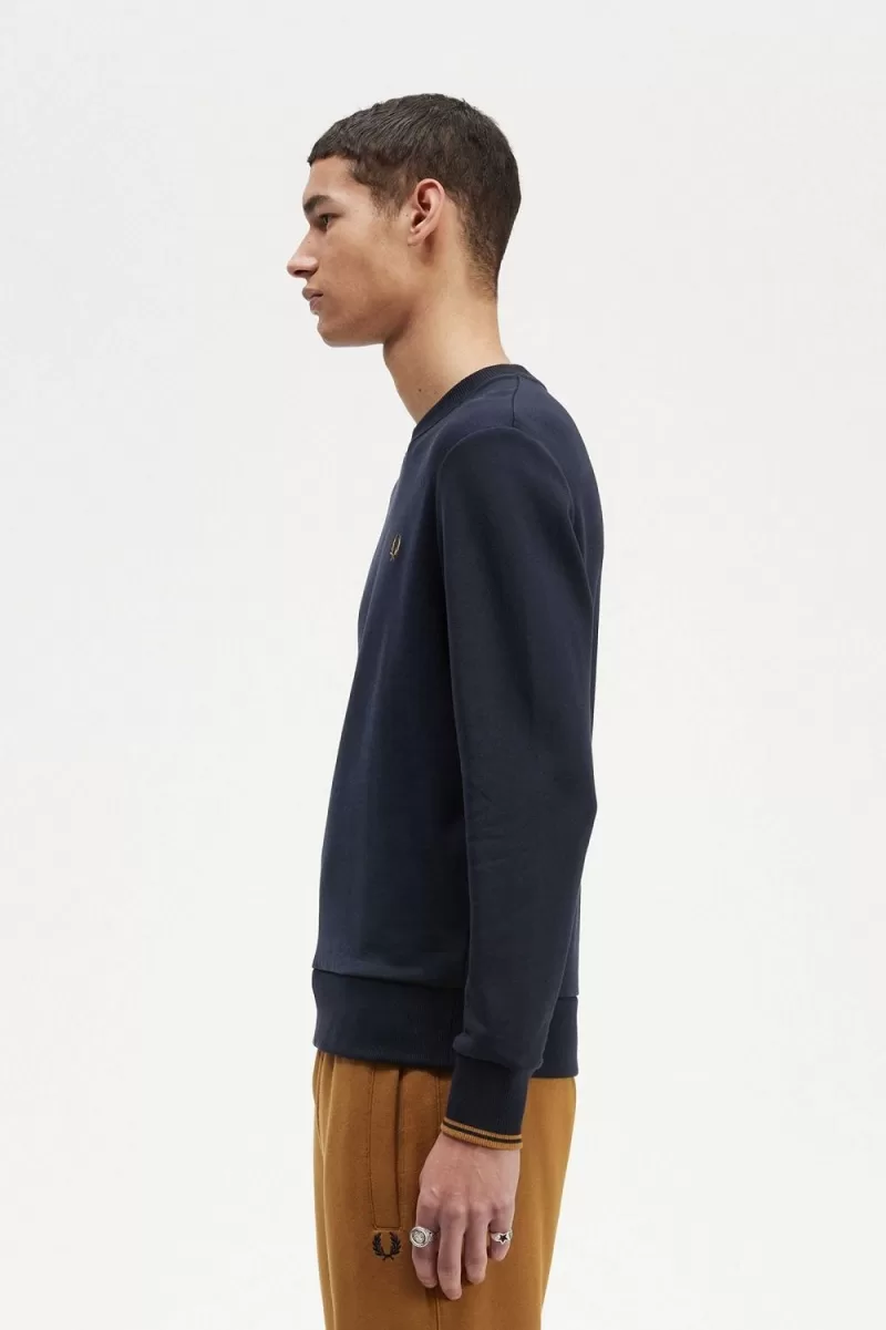 Das Baumwoll-Sweatshirt wird von Sportlern bei Wintertrainingseinheiten verwendet ein altehrwürdiger Klassiker. Unser Rundhals-Sweatshirt verfügt über dezente Designdetails von Fred Perry, wie Streifen an den Bündchen und den allgegenwärtigen Lorbeerkranz, der stolz auf die Brust gestickt ist. Für den Lagenlook konzipiert.