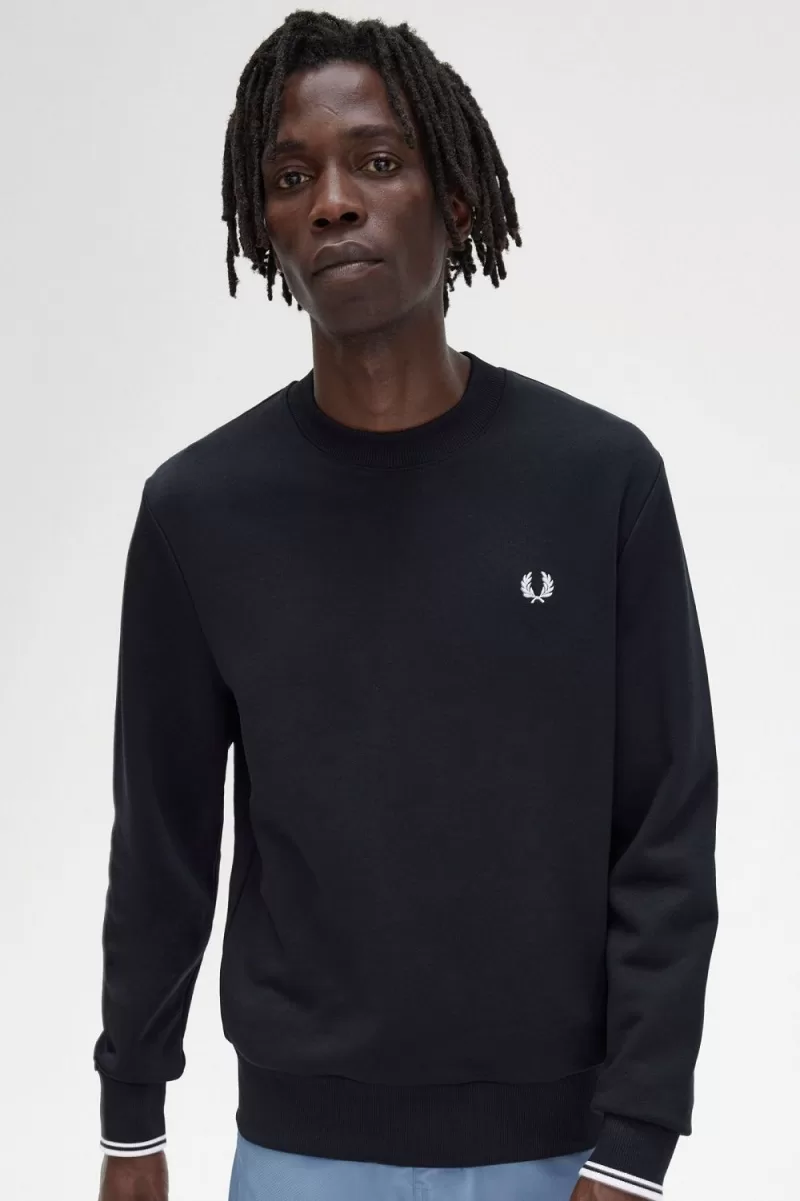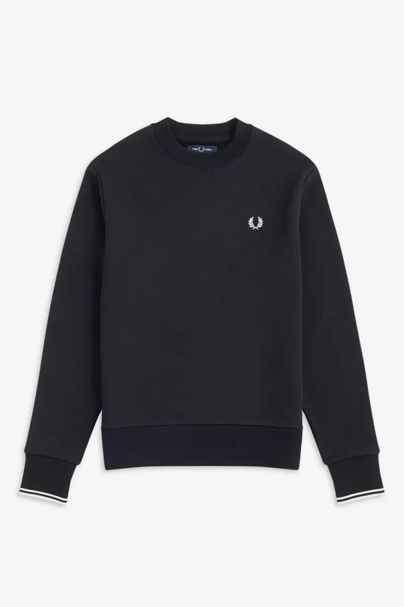 Das Baumwoll-Sweatshirt wird von Sportlern bei Wintertrainingseinheiten verwendet und ist ein Klassiker der Sportbekleidung. Unseres weist dezente Designdetails von Fred Perry auf, mit Doppelstreifen an den Bündchen.