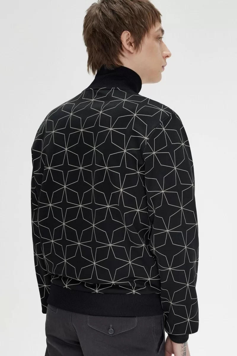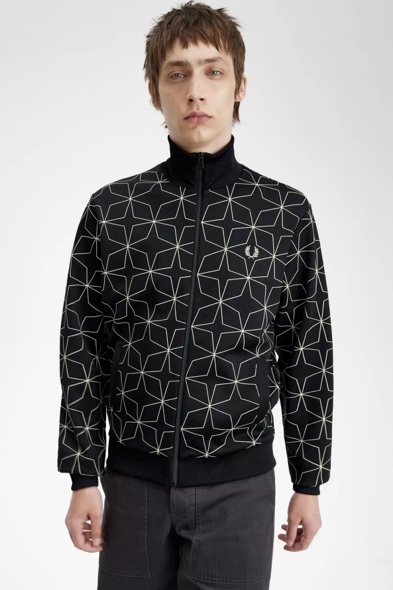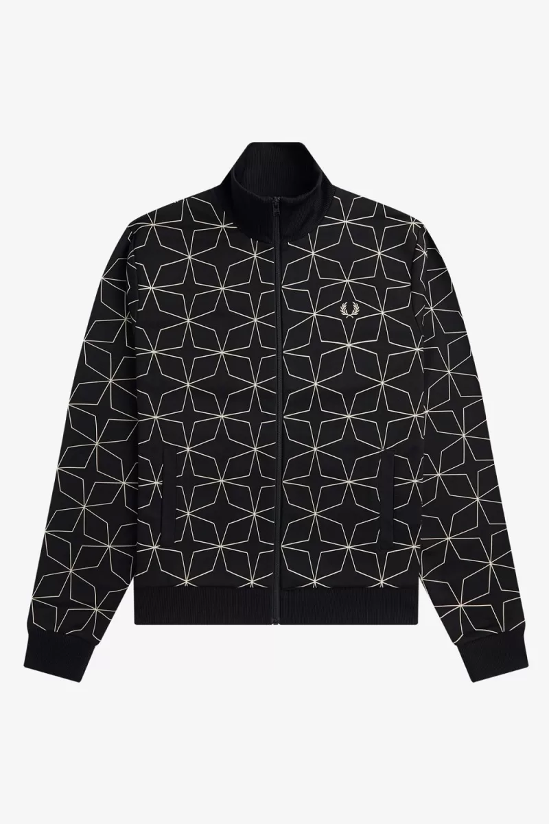Für diese Trikot-Trainingsjacke lassen wir ein hypnotisierendes geometrisches Muster aus dem Archiv wieder aufleben.