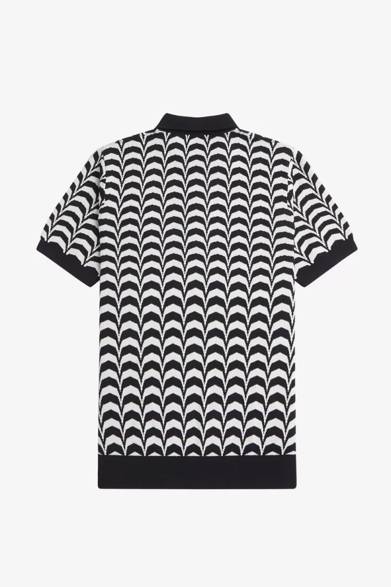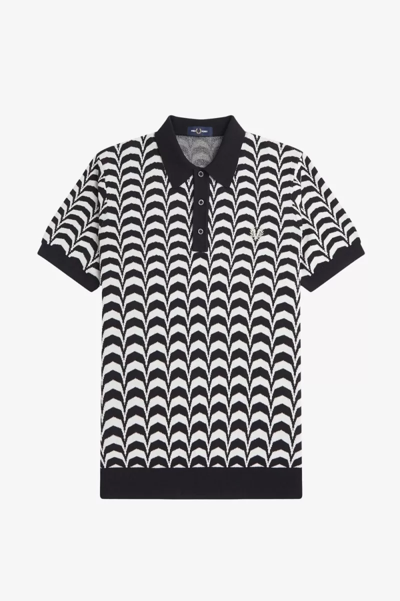 Ein Strickhemd mit drei Knöpfen und einem markanten Chevron-Print, inspiriert von unserem Archiv.
