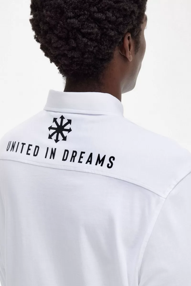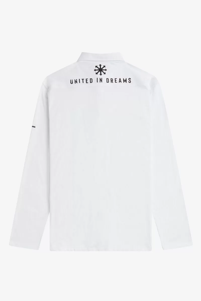 Raf Simons interpretiert die bekannten Silhouetten von Fred Perry mit den Sensibilitäten seiner gleichnamigen Linie neu und lässt sich von der Kleidung inspirieren, die auf Raves, Clubnächten und Auftritten getragen wird. Inspiriert von seiner Faszination für zweckmäßige Uniformen und Grafiken, die von fiktiven frühen Industrieplatten der späten 70er Jahre stammen, ist unsere neueste Raf Simons-Kollektion auf der Tanzfläche eines Techno-Raves genauso zu Hause wie auf einer vollbesetzten Bandshow. Unser Hemd ist aus Baumwolljersey gefertigt und verfügt über einen Grafikdruck auf der Rückseite, ein maßgeschneidertes Logo von Raf Simons auf der linken Brust und unsere charakteristische Laurel Wreath-Stickerei. Ein neu interpretierter Klassiker, der konventionellen Stil mit rebellischem Geist verbindet. Die Fred Perry x Raf Simons-Kollektion zu tragen bedeutet, sich als Teil von etwas zu fühlen – der Kraft der Jugend und Zugehörigkeit.